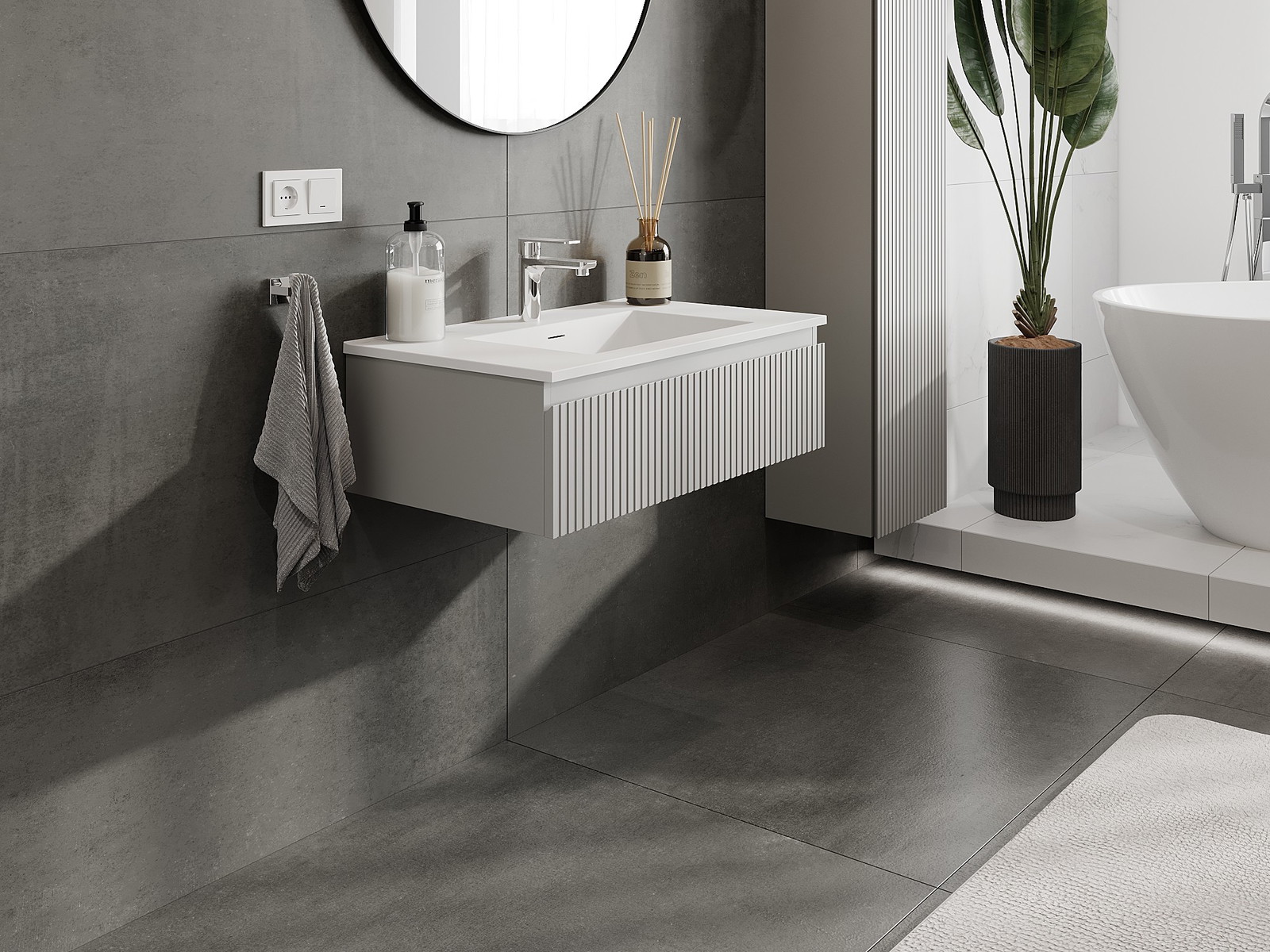 Mexen Rivel vannas istabas skapītis 80 cm ar izlietni Otis, 1 atvilktne, rievots, pelēks matēts/balts matēts