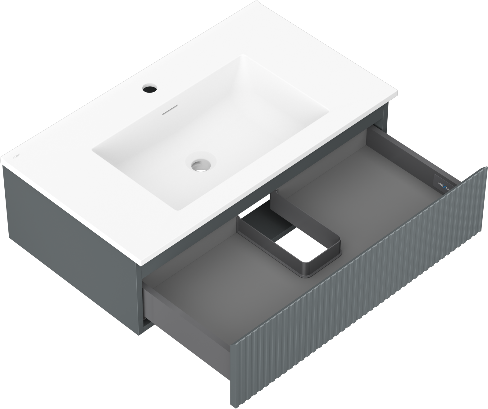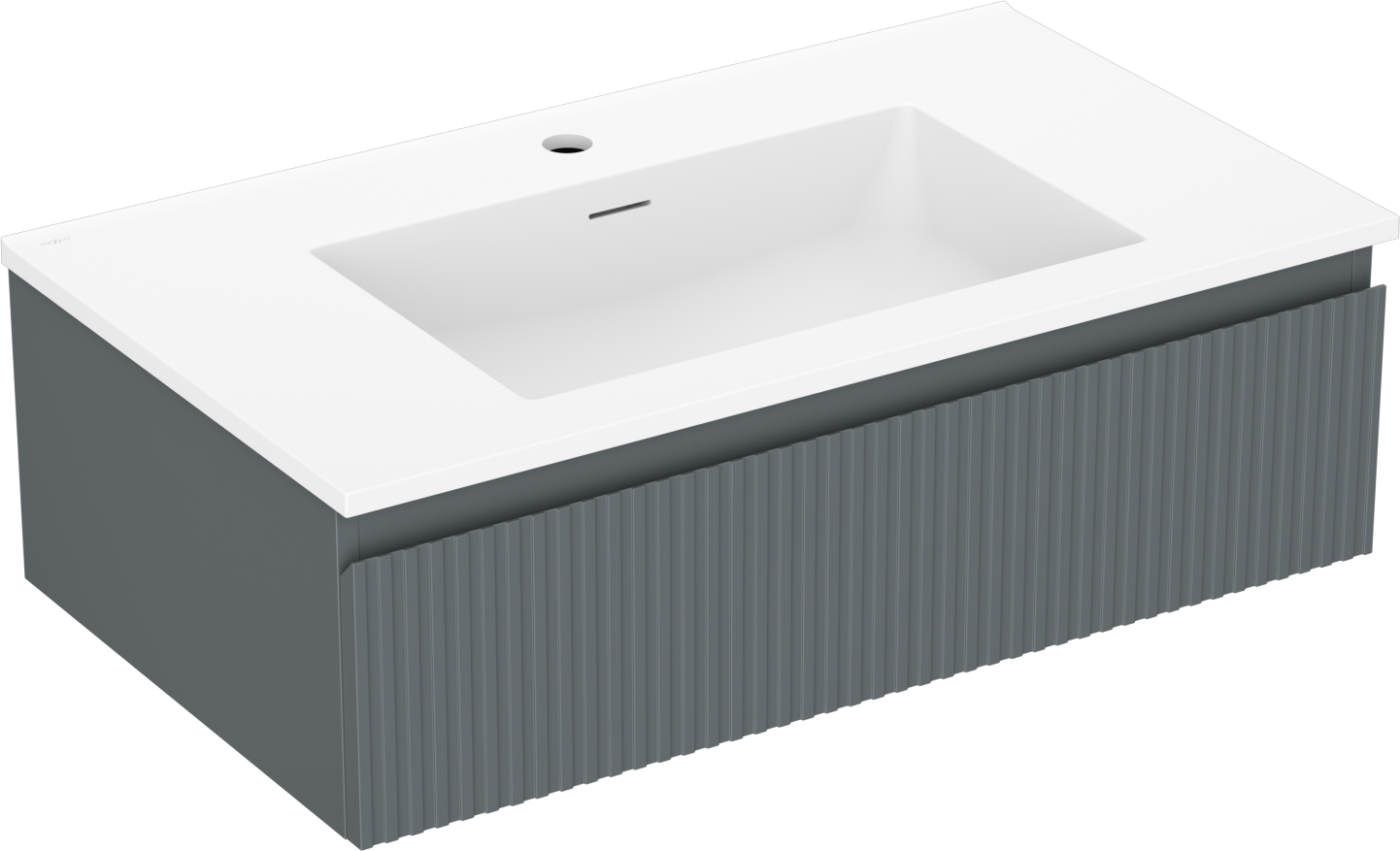 Mexen Rivel vannas istabas skapis 80 cm ar izlietni Otis, 1 atvilktne, rievota, grafīts matēts/balts matēts
