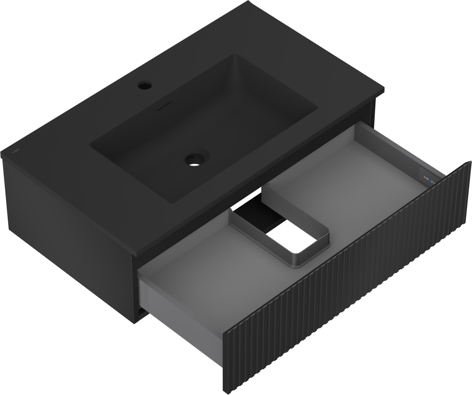 Mexen Rivel vannas istabas skapis 80 cm ar izlietni Otis, 1 atvilktne, riflēta, melna matēta - 91A20-08023-1-BF71-W18M71