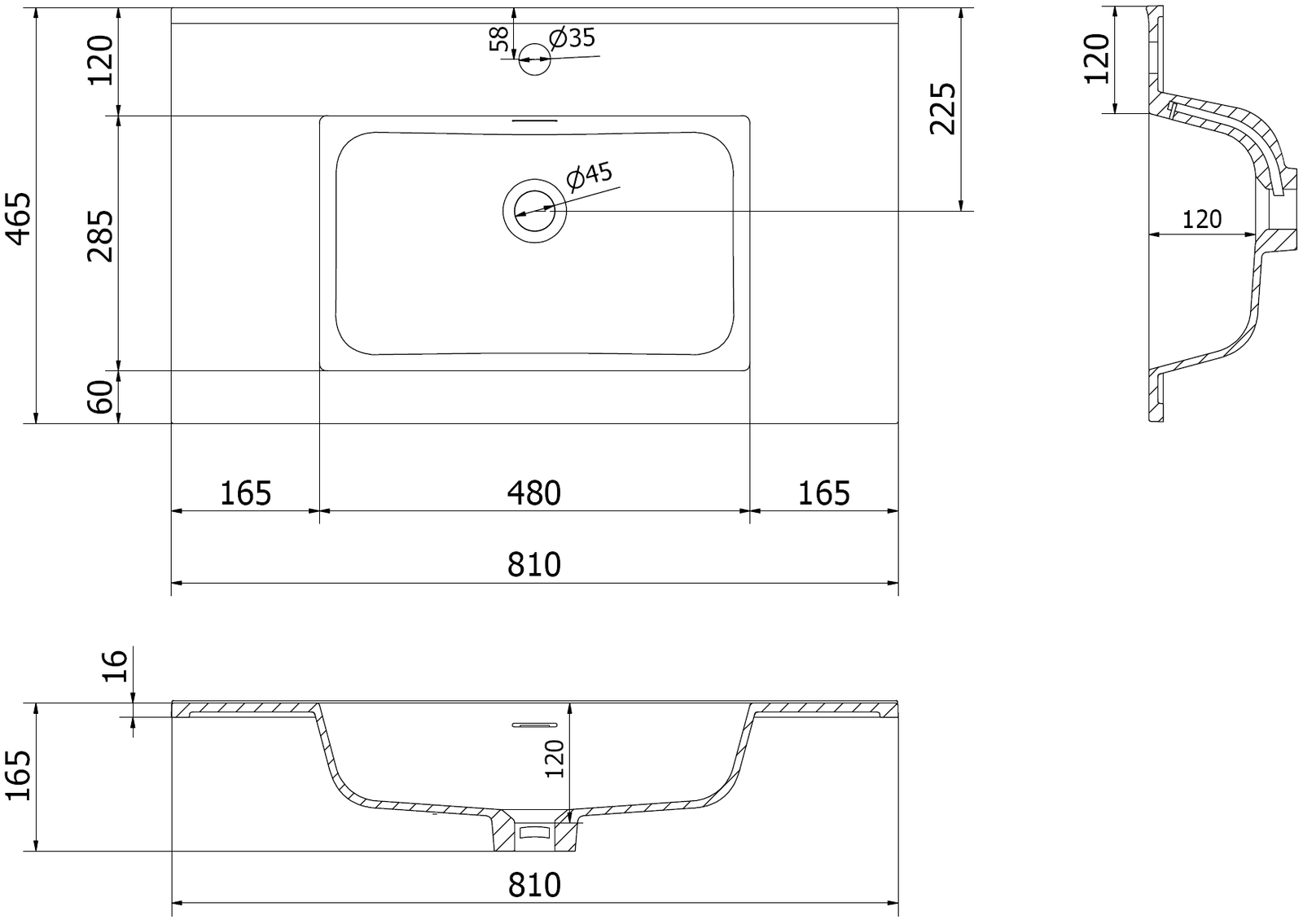 Izlietnes izmēri: