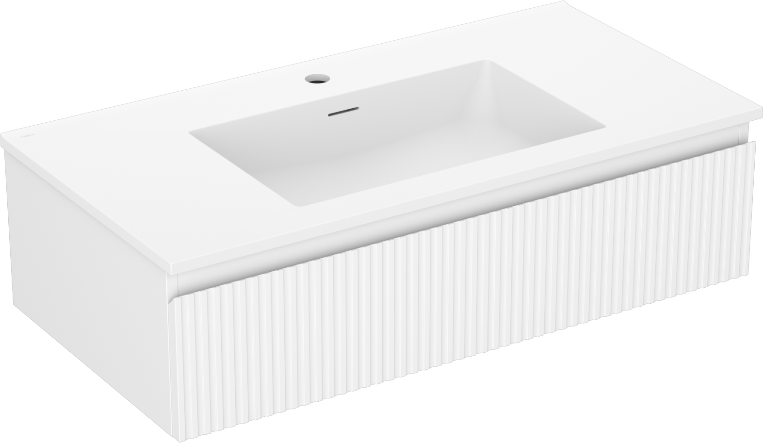 Mexen Rivel vannas istabas skapītis 90 cm ar izlietni Otis, 1 atvilktne, rievots, balts mats - 91A20-09023-1-BF01-W18M01