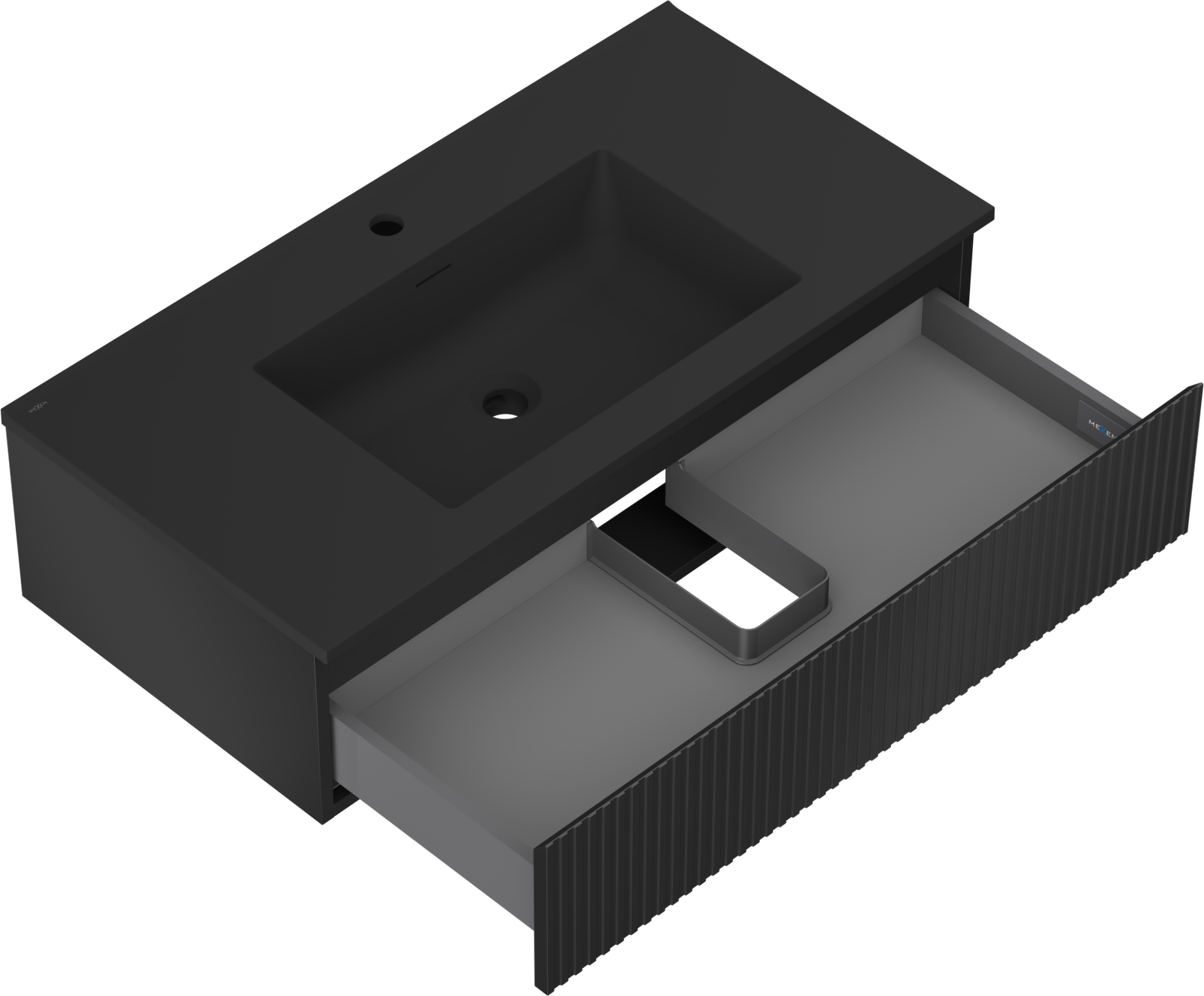 Mexen Rivel 90 cm vannas istabas skapītis ar izlietni Otis, 1 atvilktne, rievojums, melns matēts - 91A20-09023-1-BF71-W18M71