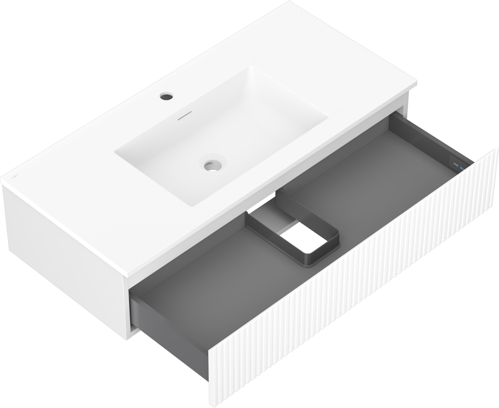 Mexen Rivel vannas istabas skapītis 100 cm ar izlietni Otis, 1 atvilktne, rievots, balts mats - 91A20-10023-1-BF01-W18M01
