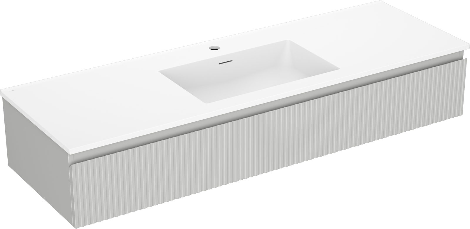Mexen Rivel vannas istabas skapis 140 cm ar izlietni Otis, 1 atvilktne, rievots, pelēks mats/balts mats