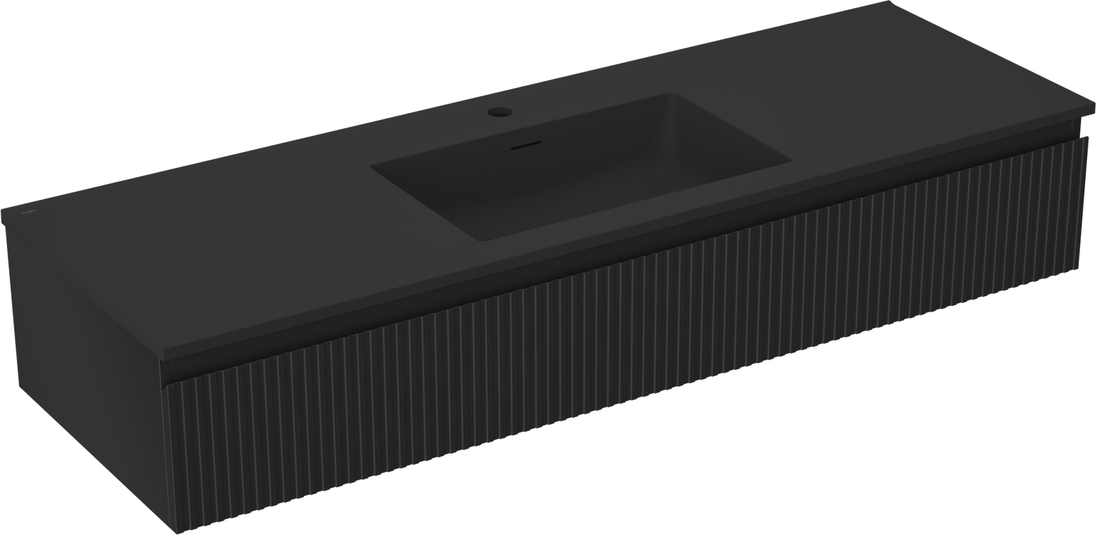 Mexen Rivel vannasistabas skapis 140 cm ar izlietni Otis, 1 atvilktne, rievota, melna matēta - 91A20-14023-1-BF71-W18M71
