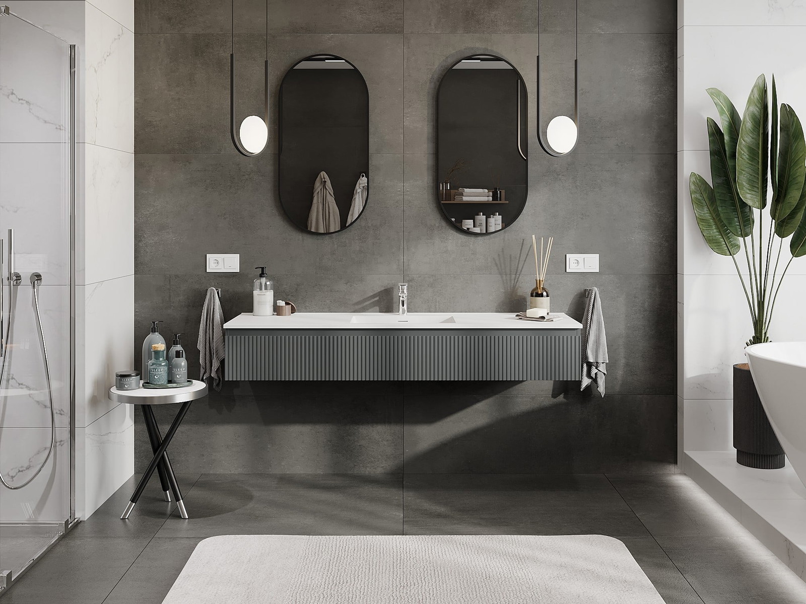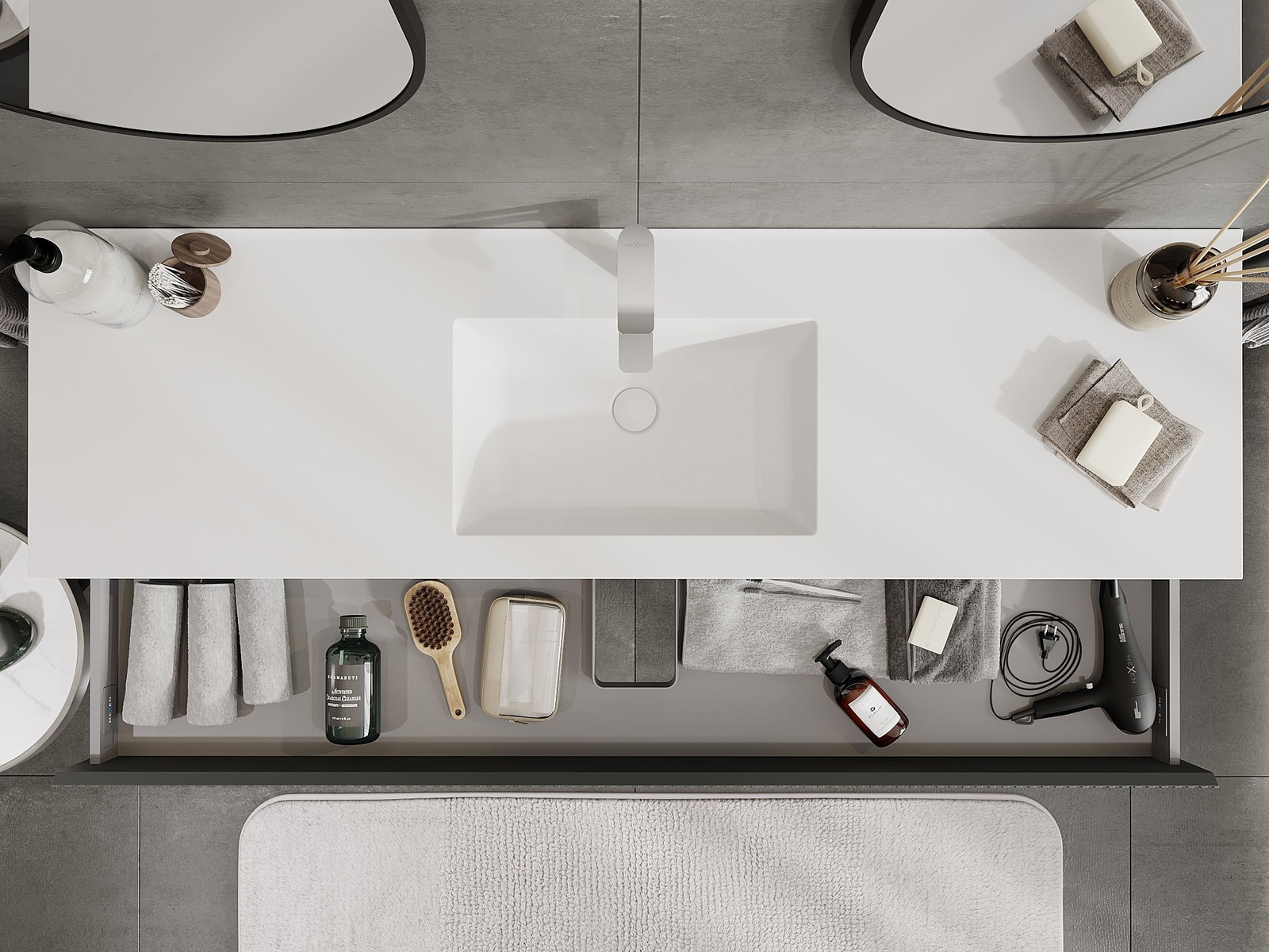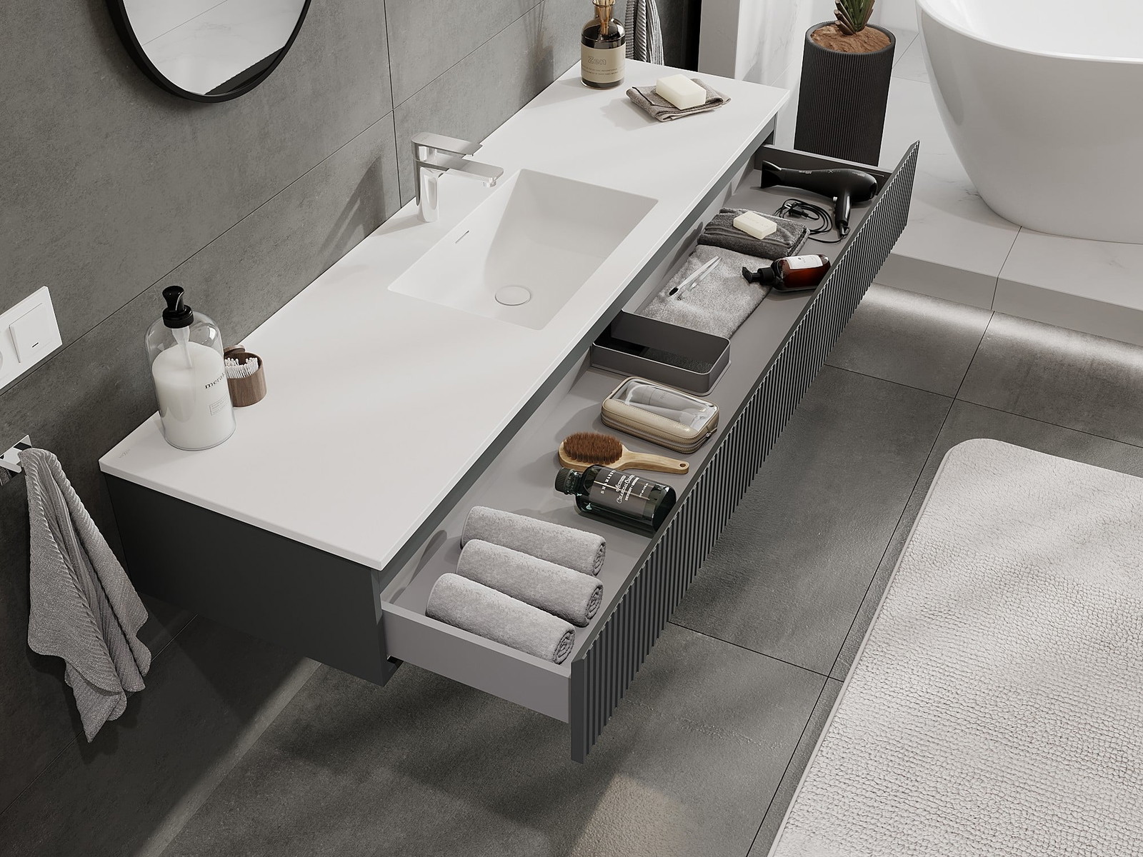 Mexen Rivel 160 cm vannas istabas skapis ar izlietni Otis, 1 atvilktne, rievots, grafīta matēts/balts matēts -