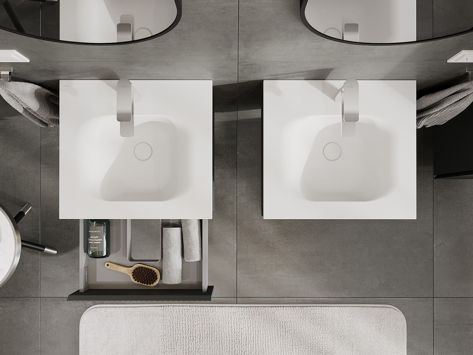 Mūsu modulārās vannas istabas mēbeles var savstarpēji kombinēt dažādās krāsu konfigurācijās, ļaujot pilnīgu personalizāciju. Var izvēlēties gan izskatu, gan atsevišķu elementu funkcijas, kas ļauj pielāgot mēbeles savām stilistiskajām un lietotāju vēlmēm.
