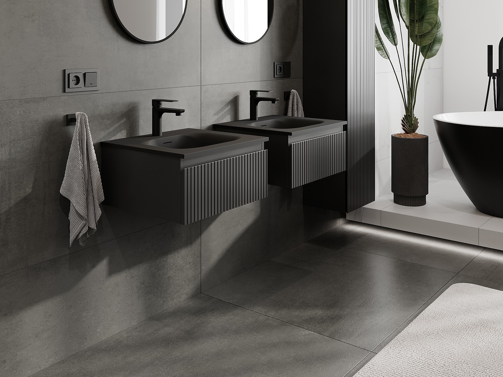 Mexen Rivel 50 cm vannas istabas skapītis ar izlietni Vela, 1 atvilktne, rievota, melns mats - 91A20-05023-1-BF71-W23M71
