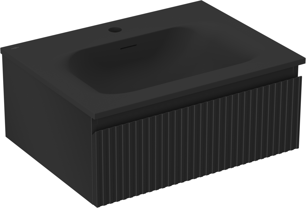 Mexen Rivel vannasistabas skapis 60 cm ar izlietni Vela, 1 atvilktne, rievots, melna matēta - 91A20-06023-1-BF71-W23M71
