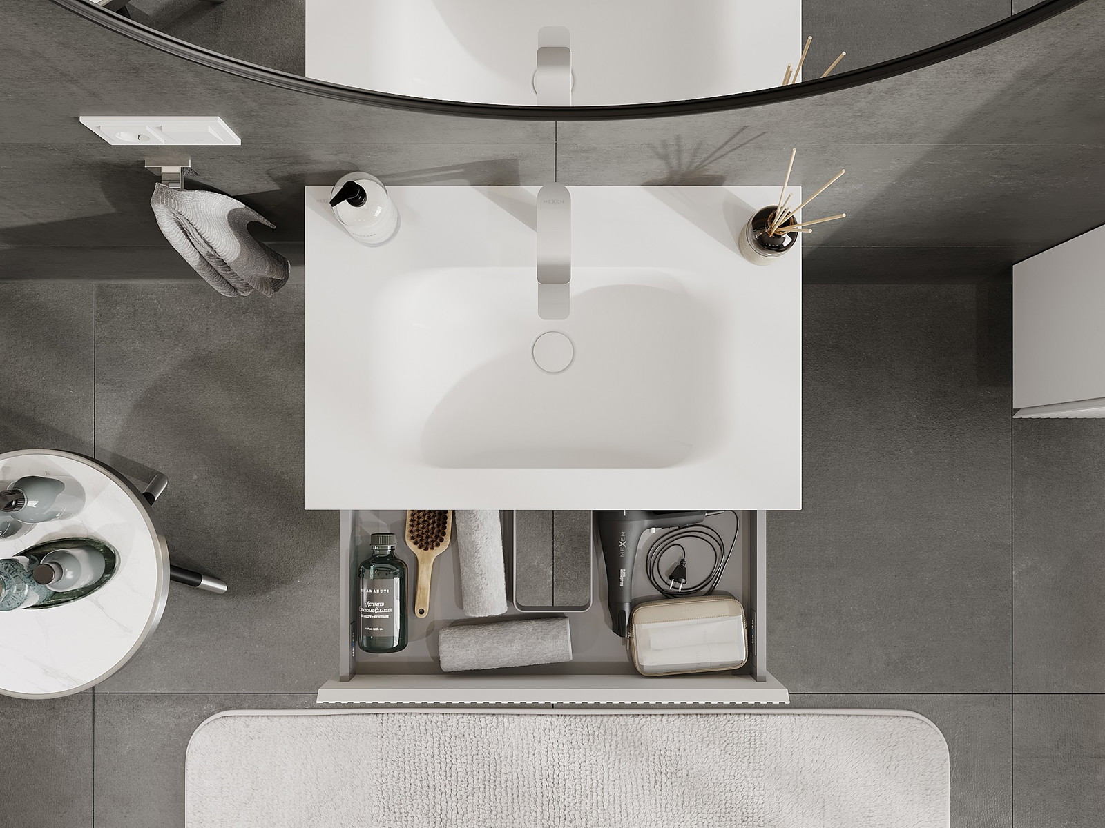 Izgriezums atvilktnē ir veidots tā, lai tajā varētu ietilpt sifons, kas ir nepieciešams izlietņu uzstādīšanā. Pateicoties tam, mēbele var tikt pilnībā funkcionāli uzstādīta, neatstājot ievērojamu vietu atvilktnē instalācijai.