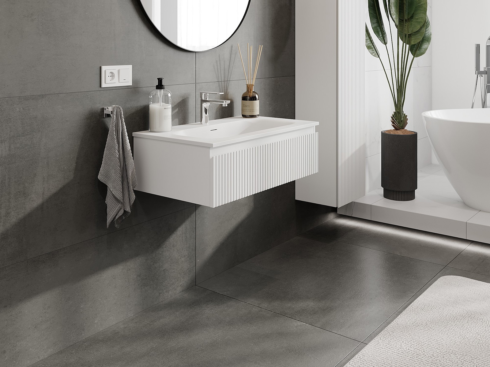 Mexen Rivel vannas istabas skapis 80 cm ar izlietni Vela, 1 atvilktne, rievots, balts mats - 91A20-08023-1-BF01-W23M01