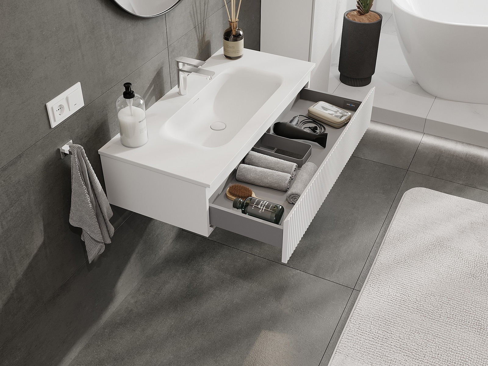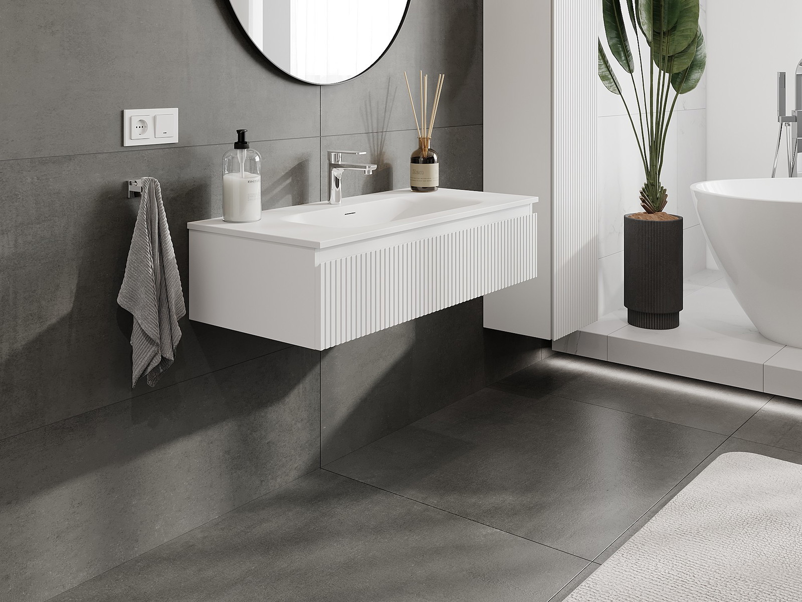 Mexen Rivel 100 cm vannas istabas skapītis ar izlietni Vela, 1 atvilktne, rievota, balts matēts - 91A20-10023-1-BF01-W23M01