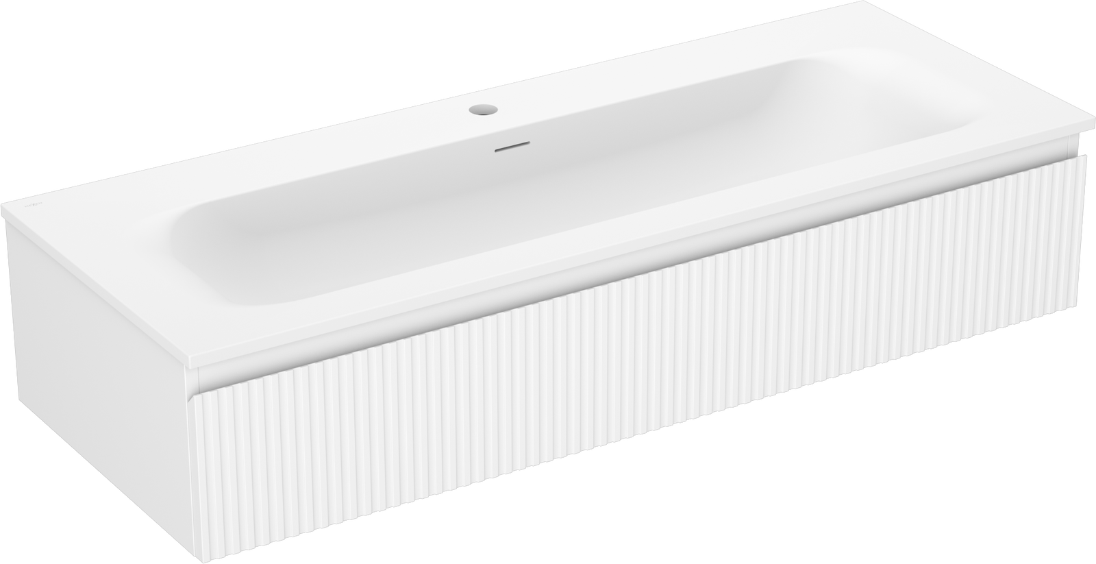Mexen Rivel 120 cm vannas istabas skapis ar izlietni Vela, 1 atvilktne, rievots, balts matēts - 91A20-12023-1-BF01-W23M01