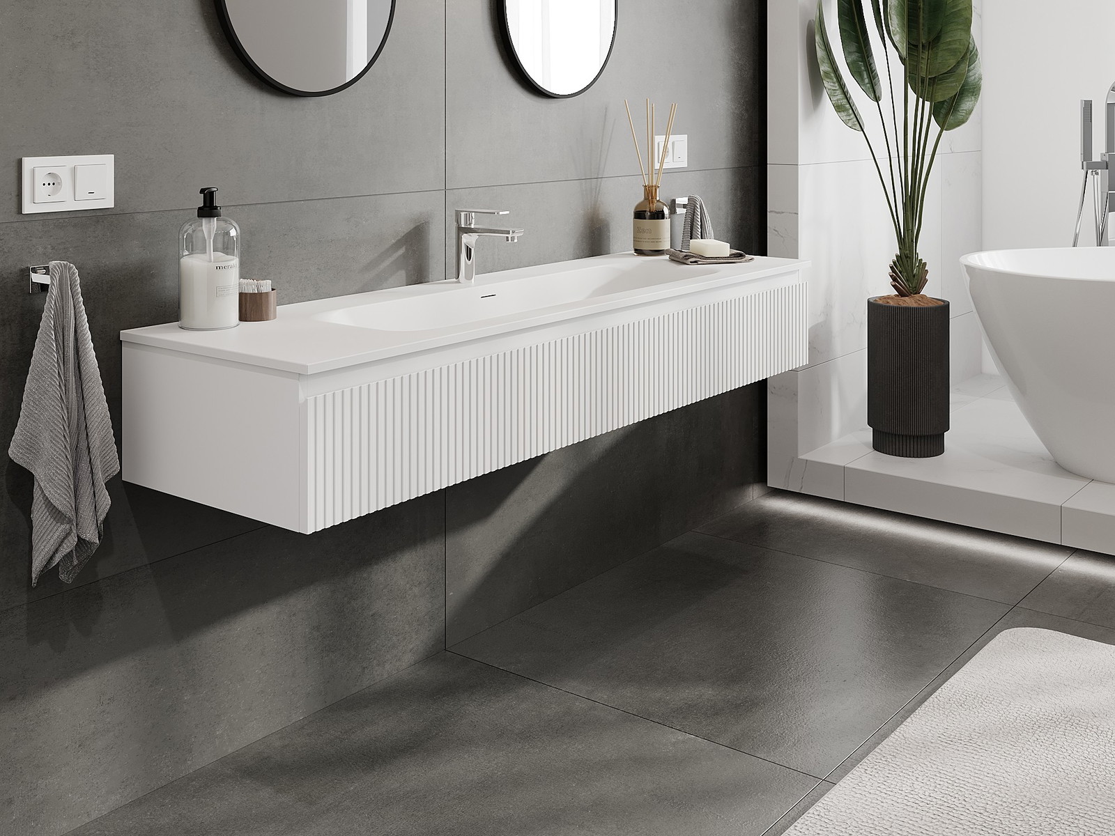 Mexen Rivel 160 cm vannas istabas skapis ar izlietni Vela, 1 atvilktne, rievots, balts mats - 91A20-16023-1-BF01-W23M01