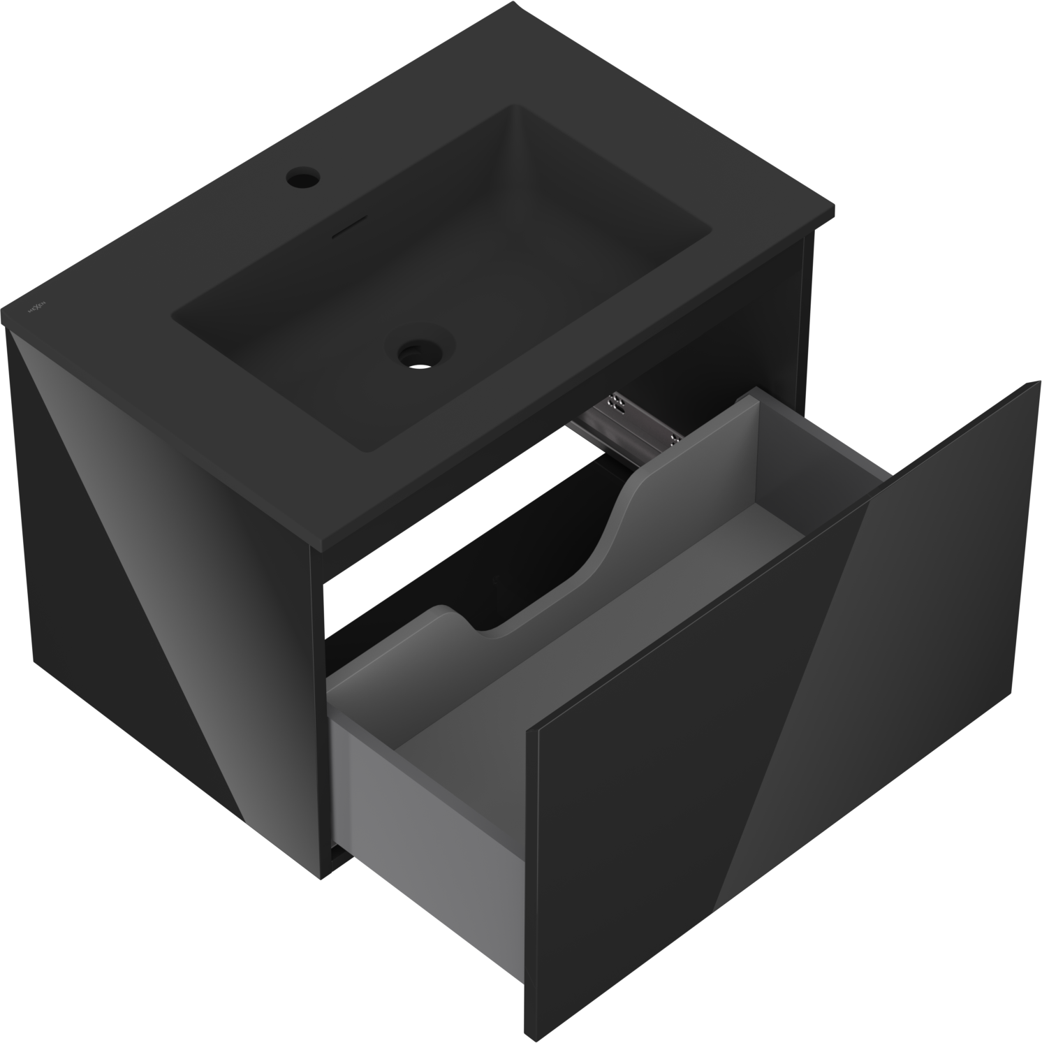 Mexen Orio 70 cm vannas istabas skapis ar izlietni Otis, 1 atvilktne, melns spīdums/melns matēts - 91A10-07047-1-BF70-W18M71
