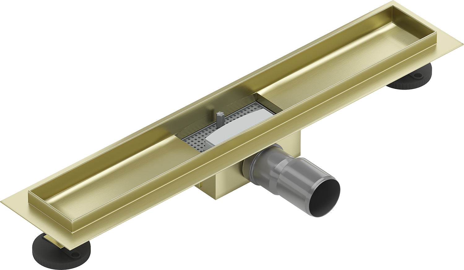 Noteka ir aprīkota ar regulējamām kājiņām, kas ļauj pielāgot atbilstošu notekas augstumu un izlīdzināt uz nelīdzenas virsmas. Tādējādi noteka labāk pielāgojas konkrētās vannas istabas apstākļiem.