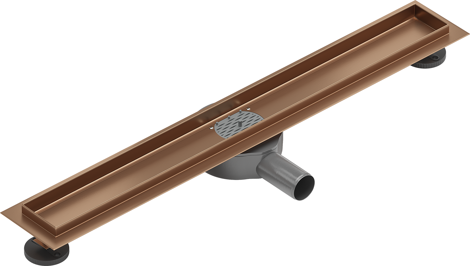 Noteka ir aprīkota ar regulējamām kājiņām, kas ļauj pielāgot atbilstošu notekas augstumu un izlīdzināt uz nelīdzenas virsmas. Tādējādi noteka labāk pielāgojas konkrētās vannas istabas apstākļiem.
