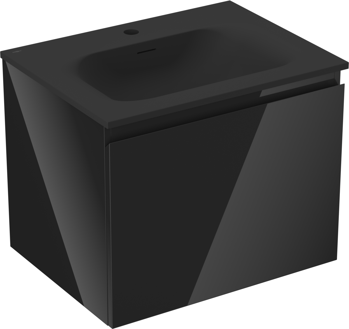 Mexen Orio vannas istabas skapītis 60 cm ar izlietni Vela, 1 atvilktne, melns spīdums/melns mats - 91A10-06047-1-BF70-W23M71