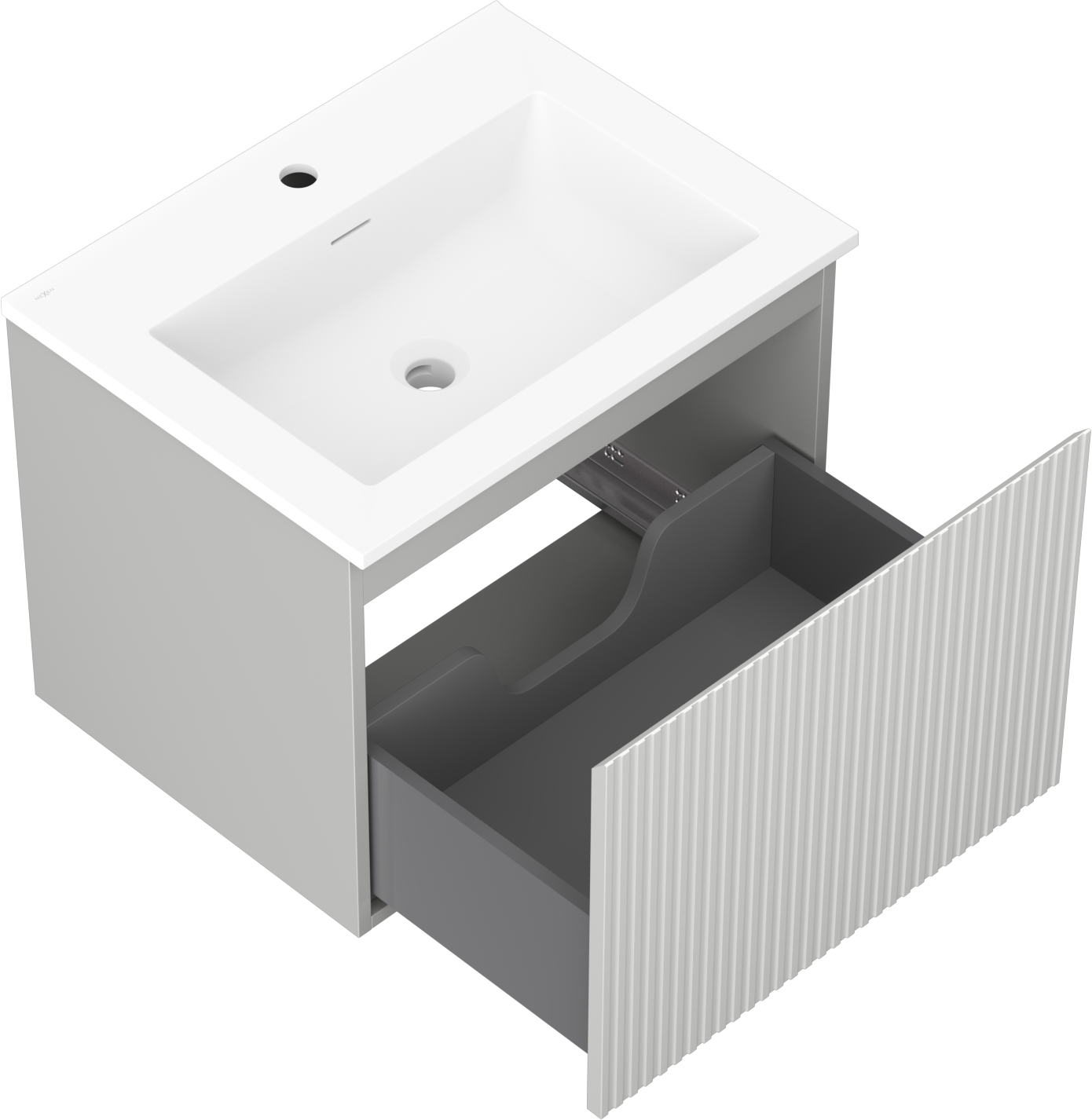 Mexen Rivel vannas istabas skapītis 60 cm ar izlietni Otis, 1 atvilktne, rievojums, pelēks mats/balts mats
