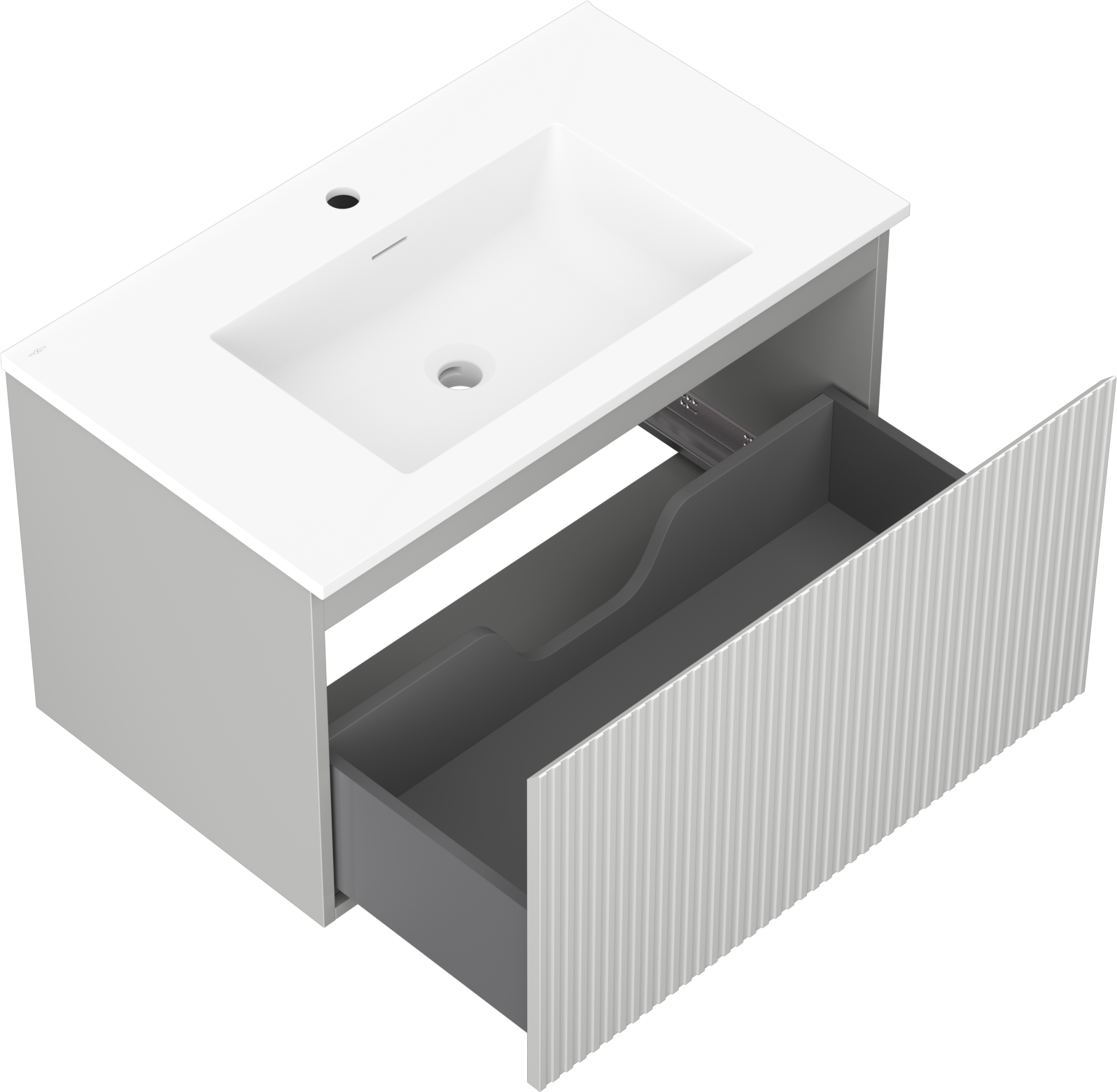 Mexen Rivel vannas istabas skapītis 80 cm ar izlietni Otis, 1 atvilktne, rievots, pelēks matēts/balts matēts