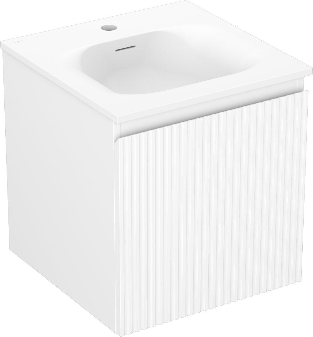 Mexen Rivel vannas istabas skapītis 45 cm ar izlietni Vela, 1 atvilktne, rievots, balts mats - 91A20-04547-1-BF01-W23M01