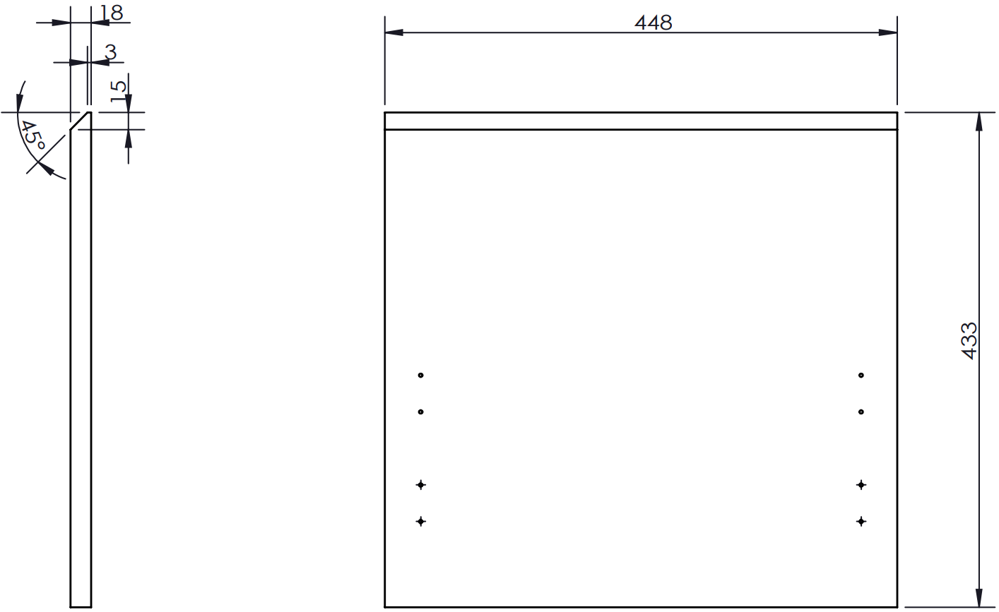 Priekšpuses materiāls: MDF plāksne, lakuota