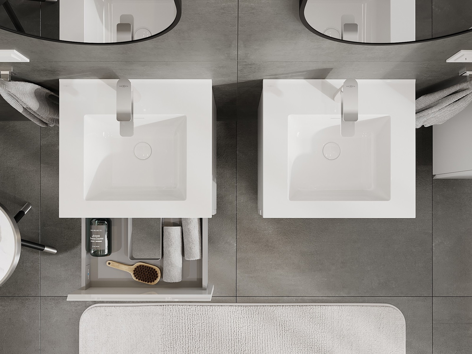 Mexen Orio vannas istabas skapītis 50 cm ar izlietni Otis, 2 atvilktnes, balts spīdums - 91A10-05047-2-BFF00-W18M00