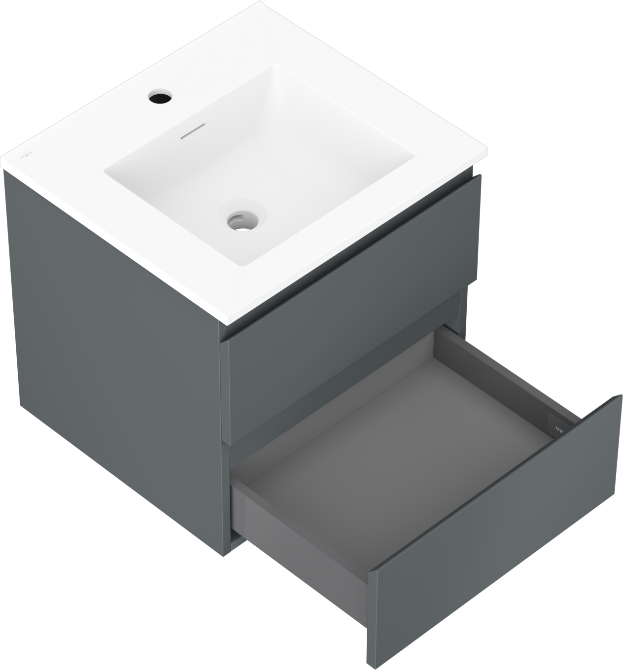 Mexen Orio vannas istabas skapītis 50 cm ar izlietni Otis, 2 atvilktnes, grafīta matēts/balts matēts