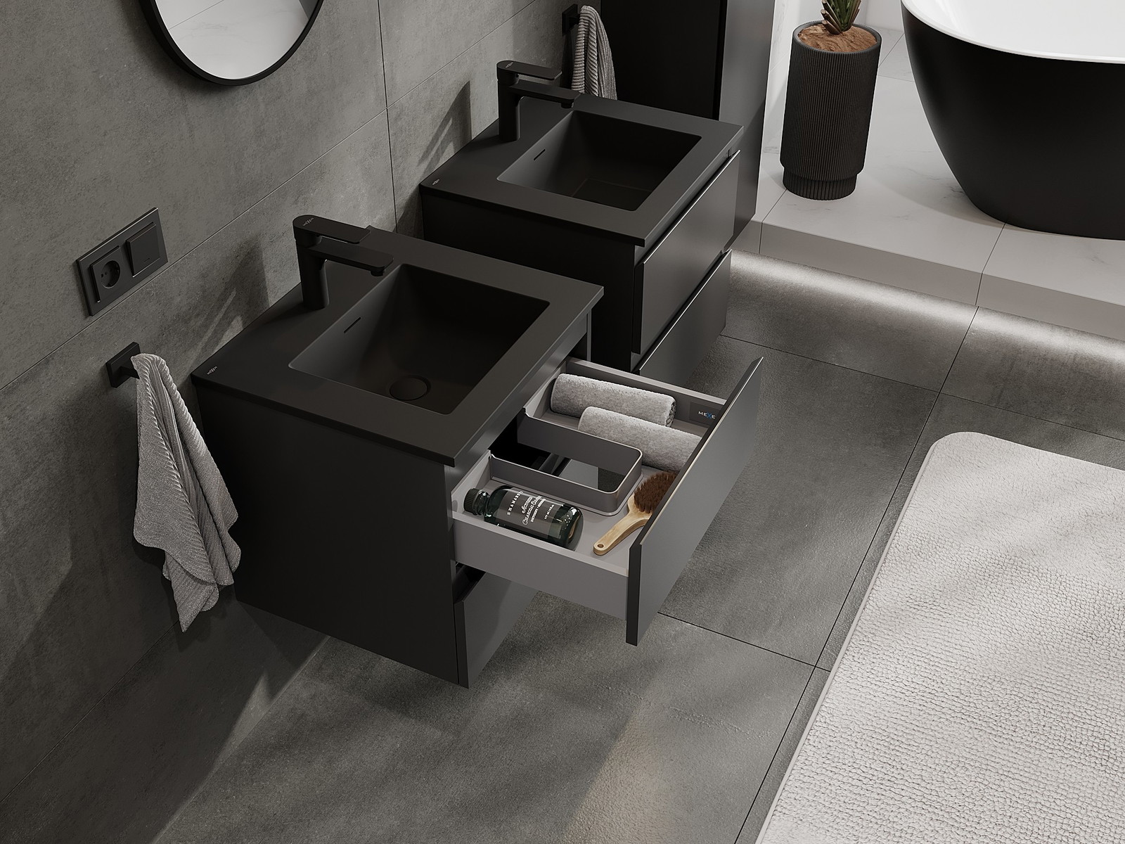 Mexen Orio 50 cm vannas istabas skapītis ar izlietni Otis, 2 atvilktnes, melns mats - 91A10-05047-2-BFF71-W18M71