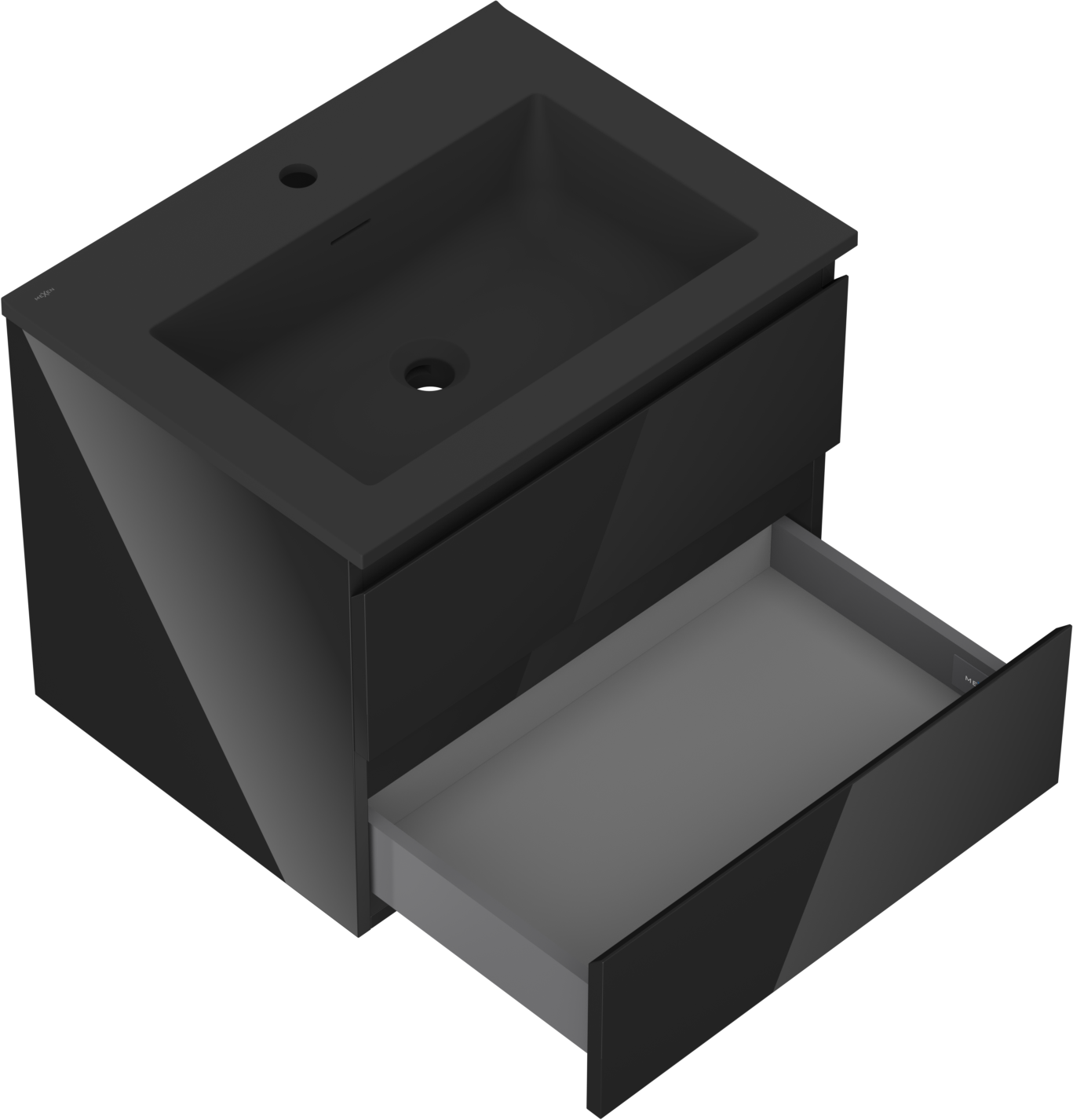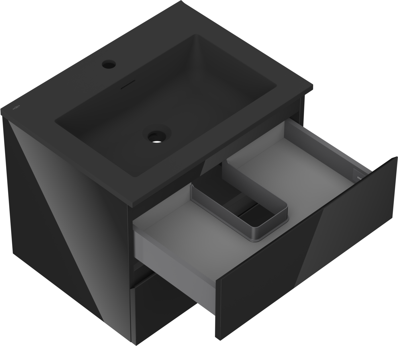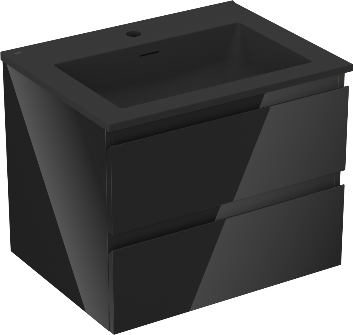 Mexen Orio vannas istabas skapītis 60 cm ar izlietni Otis, 2 atvilktnes, melns spīdums/melns mats - 91A10-06047-2-BFF70-W18M71