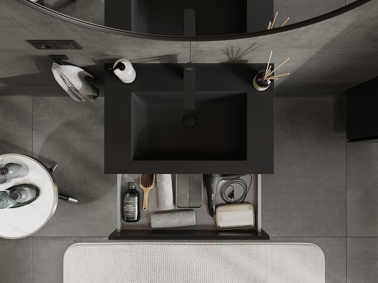 Mexen Orio vannas istabas skapītis 70 cm ar izlietni Otis, 2 atvilktnes, melns matēts - 91A10-07047-2-BFF71-W18M71