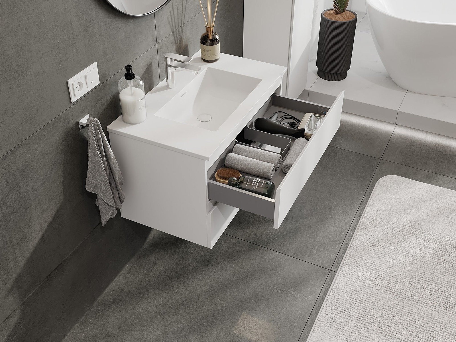 Mexen Orio 80 cm vannas istabas skapis ar izlietni Otis, 2 atvilktnes, balts matēts - 91A10-08047-2-BFF01-W18M01