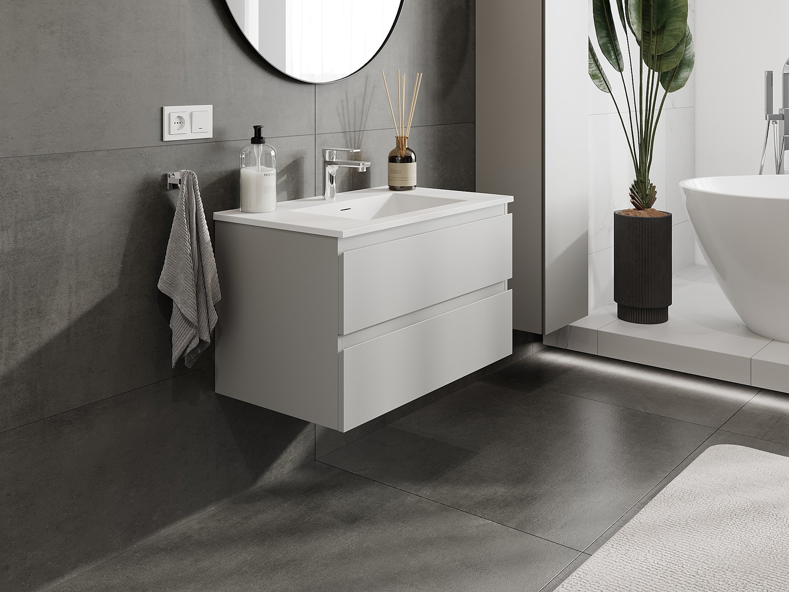 Mexen Orio 80 cm vannas istabas skapītis ar izlietni Otis, 2 atvilktnes, pelēks matēts/balts matēts - 91A10-08047-2-BFF62-W18M01