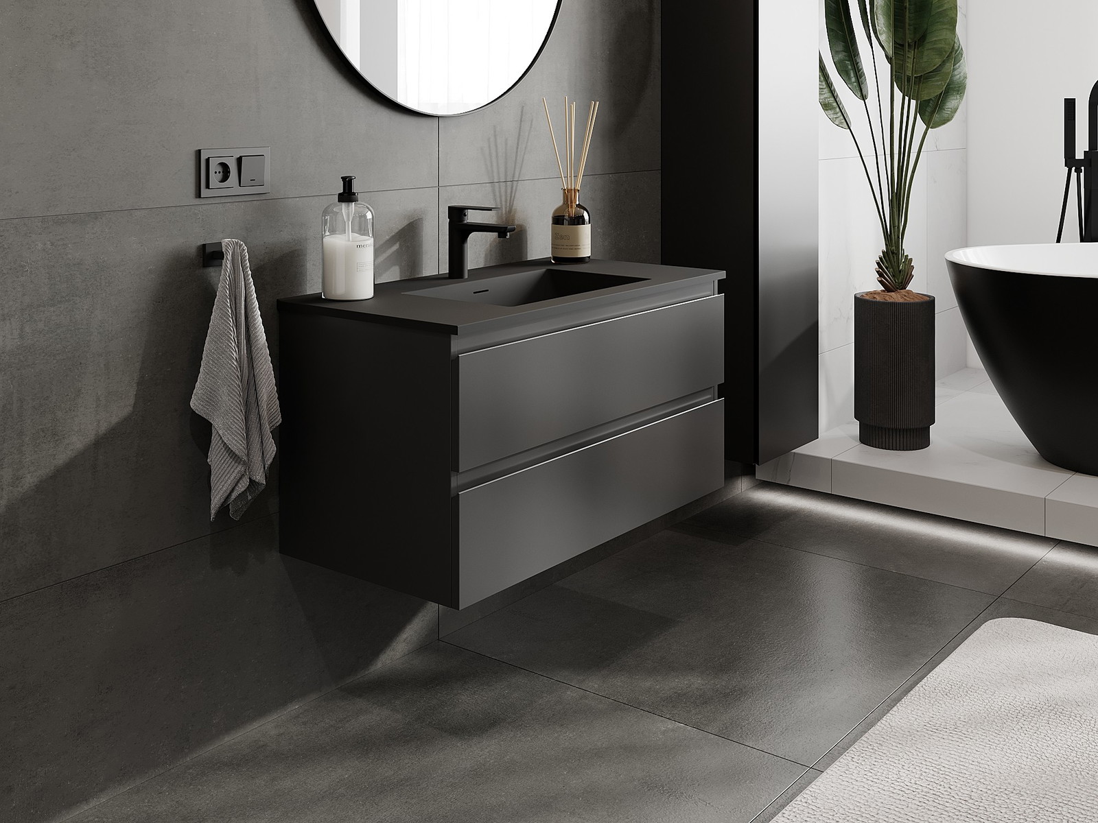 Mexen Orio vannas istabas skapis 90 cm ar izlietni Otis, 2 atvilktnes, melns matēts - 91A10-09047-2-BFF71-W18M71