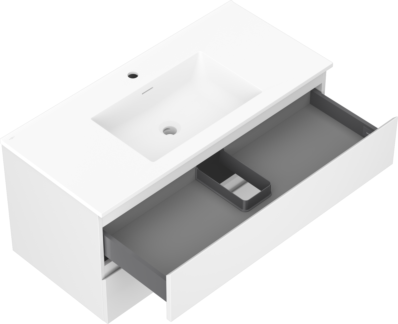 Izgriezums atvilktnē ir veidots tā, lai tajā varētu ietilpt sifons, kas ir nepieciešams izlietņu uzstādīšanā. Pateicoties tam, mēbele var tikt pilnībā funkcionāli uzstādīta, neatstājot ievērojamu vietu atvilktnē instalācijai.
