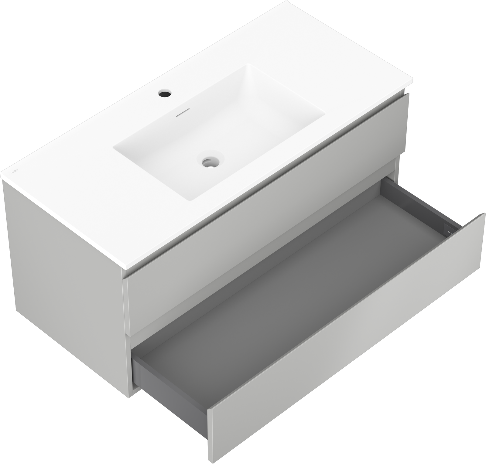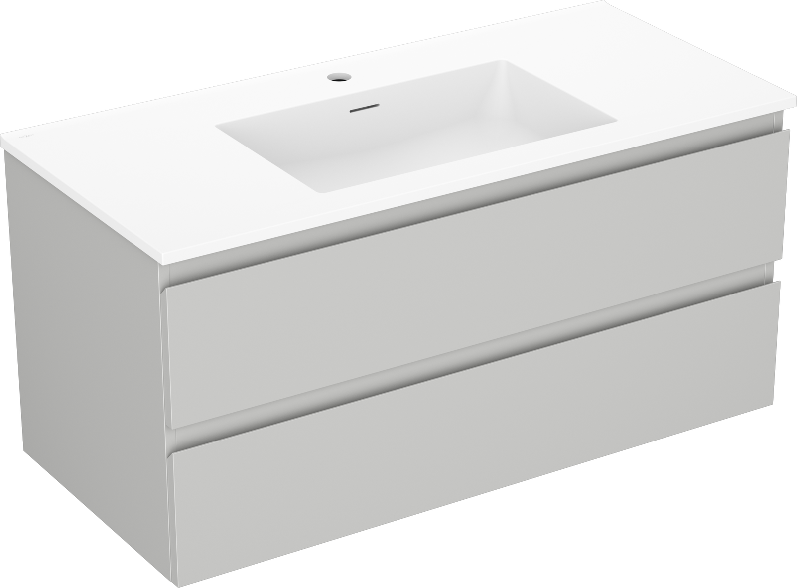 Mexen Orio vannas istabas skapis 100 cm ar izlietni Otis, 2 atvilktnes, pelēks matēts/balts matēts