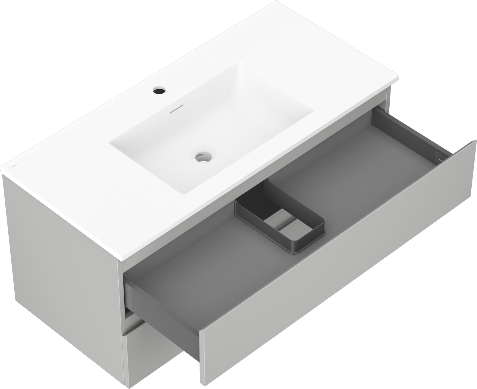 Izgriezums atvilktnē ir veidots tā, lai tajā varētu ietilpt sifons, kas ir nepieciešams izlietņu uzstādīšanā. Pateicoties tam, mēbele var tikt pilnībā funkcionāli uzstādīta, neatstājot ievērojamu vietu atvilktnē instalācijai.