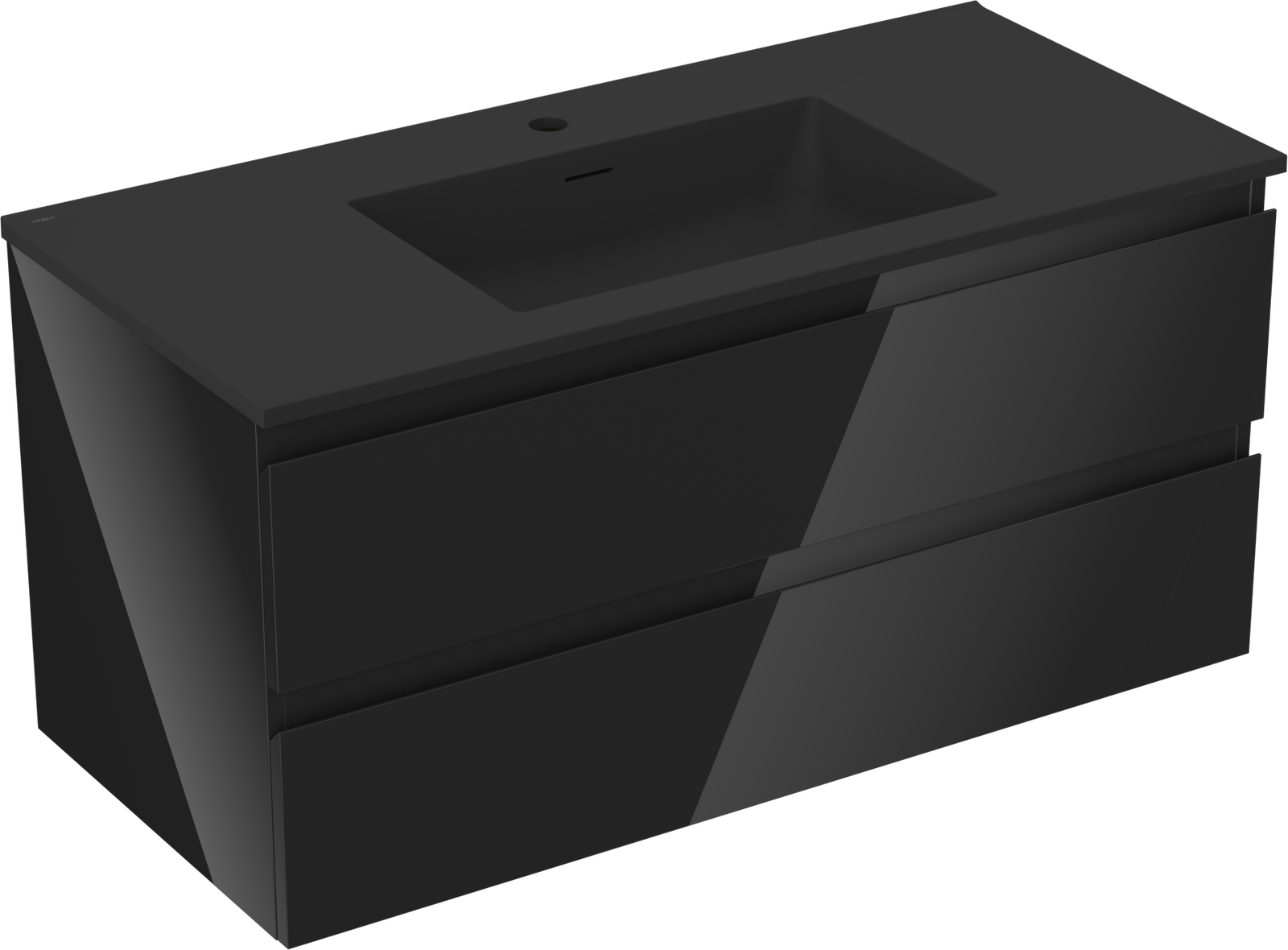 Mexen Orio vannas istabas skapis 100 cm ar izlietni Otis, 2 atvilktnes, melns spīdums/melns matēts - 91A10-10047-2-BFF70-W18M71
