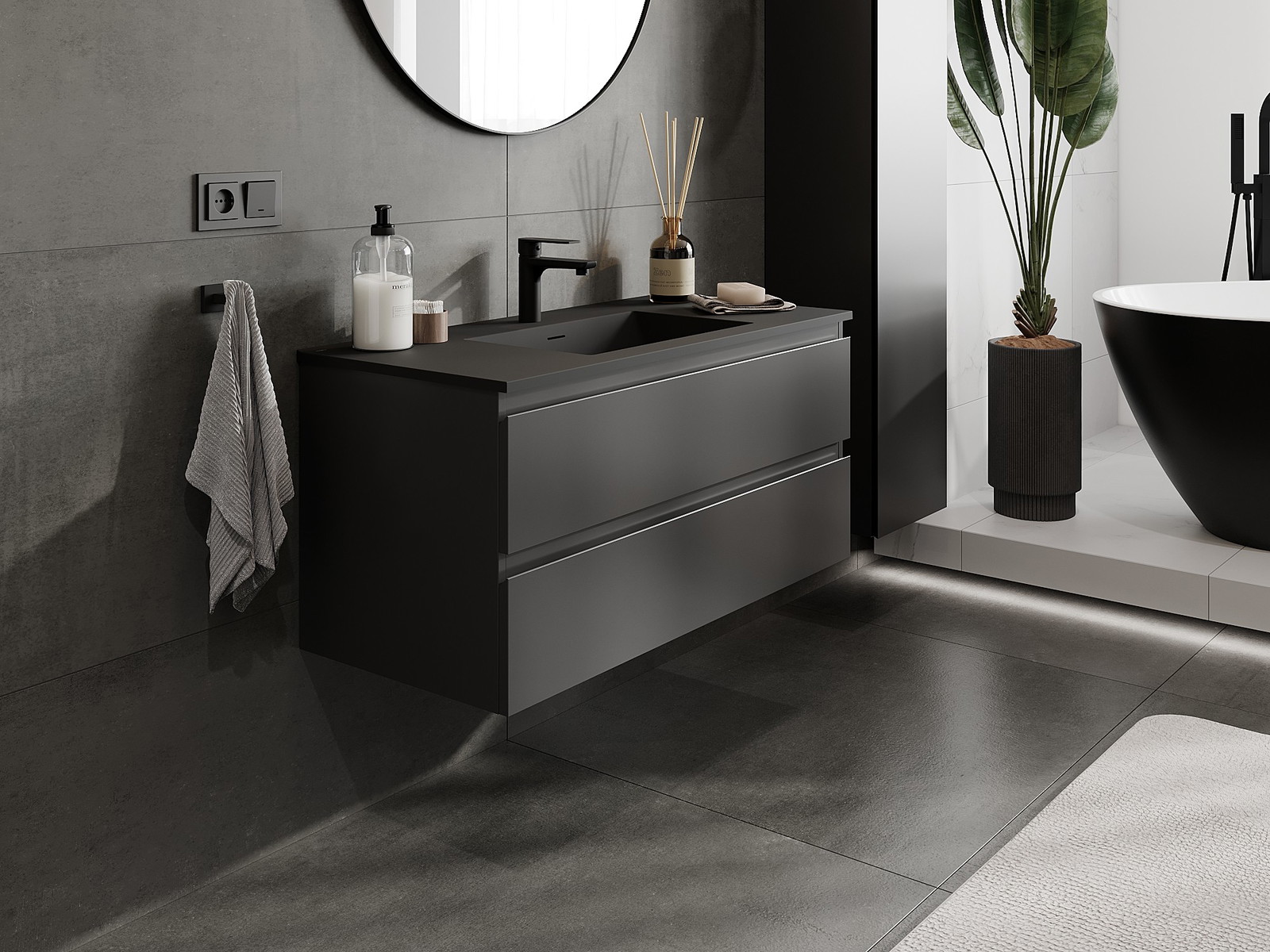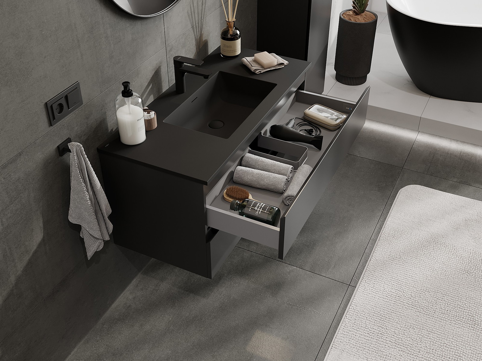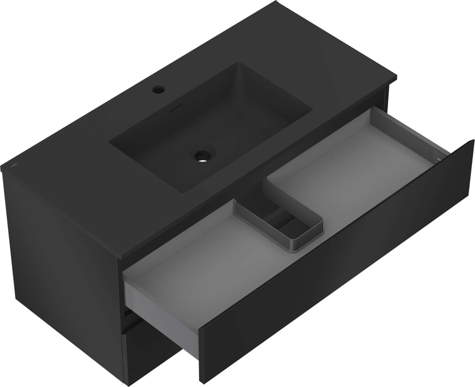 Mexen Orio vannas istabas skapis 100 cm ar izlietni Otis, 2 atvilktnes, melns matēts - 91A10-10047-2-BFF71-W18M71