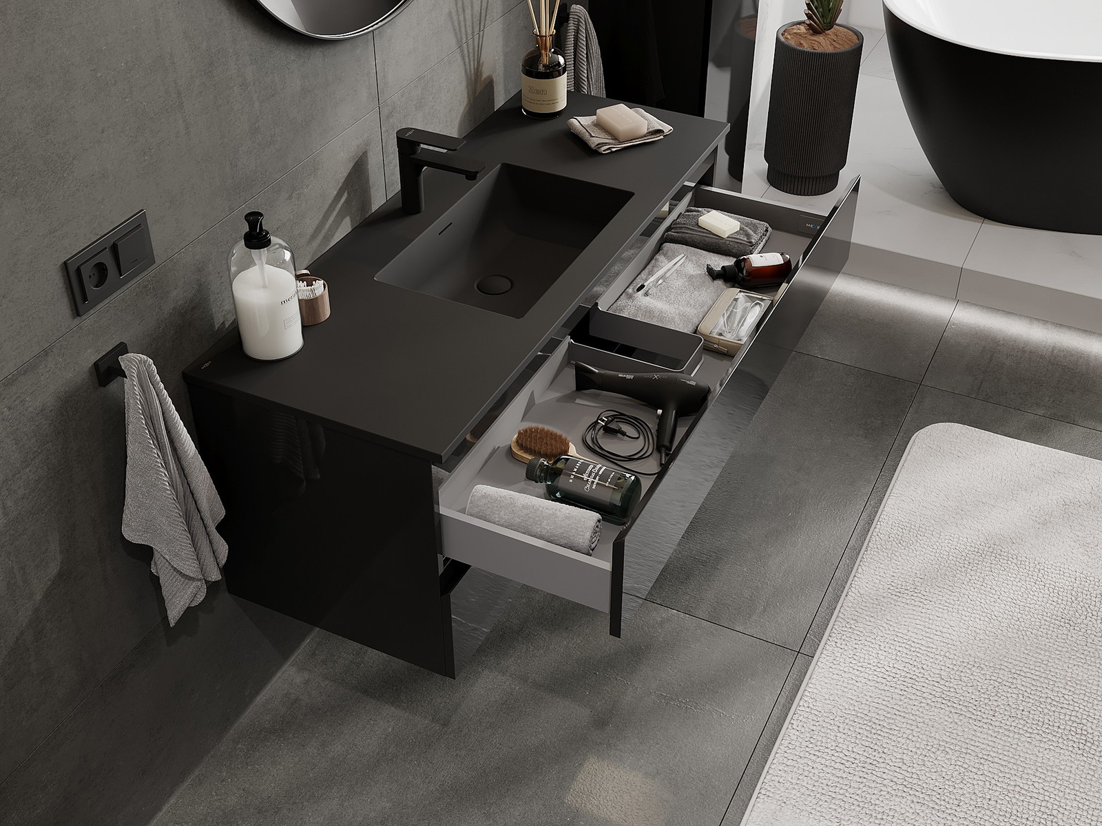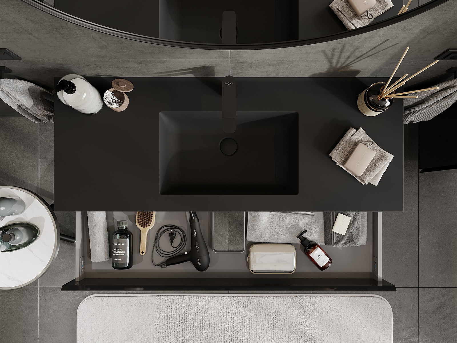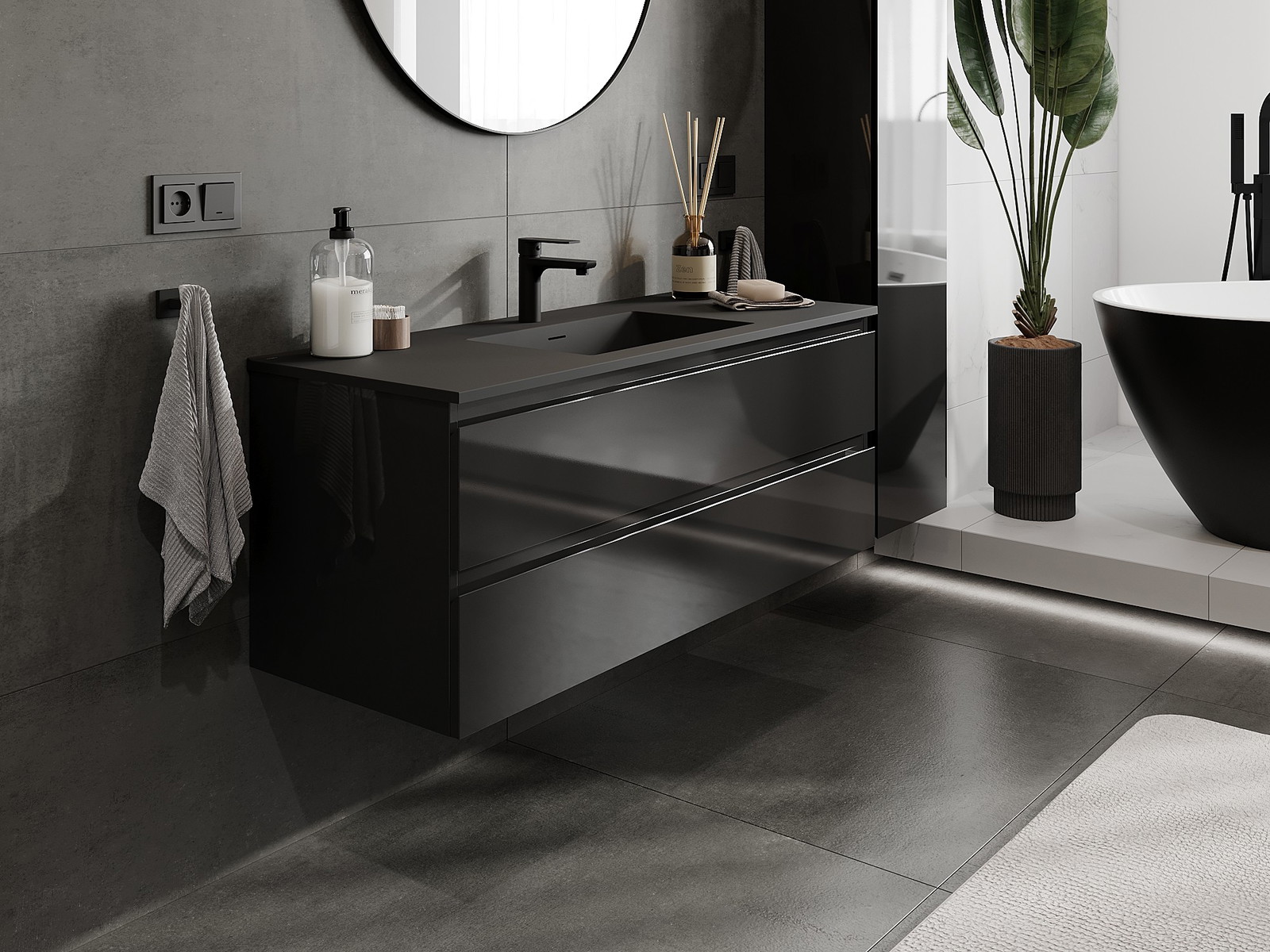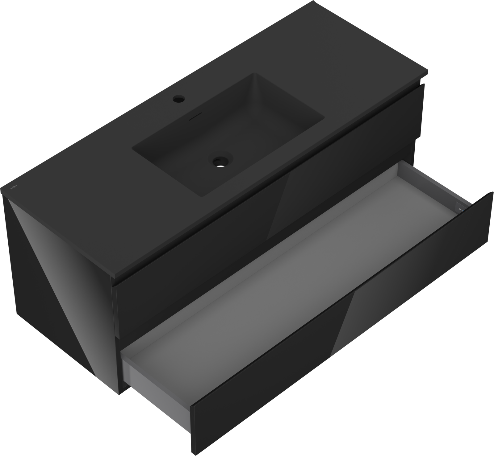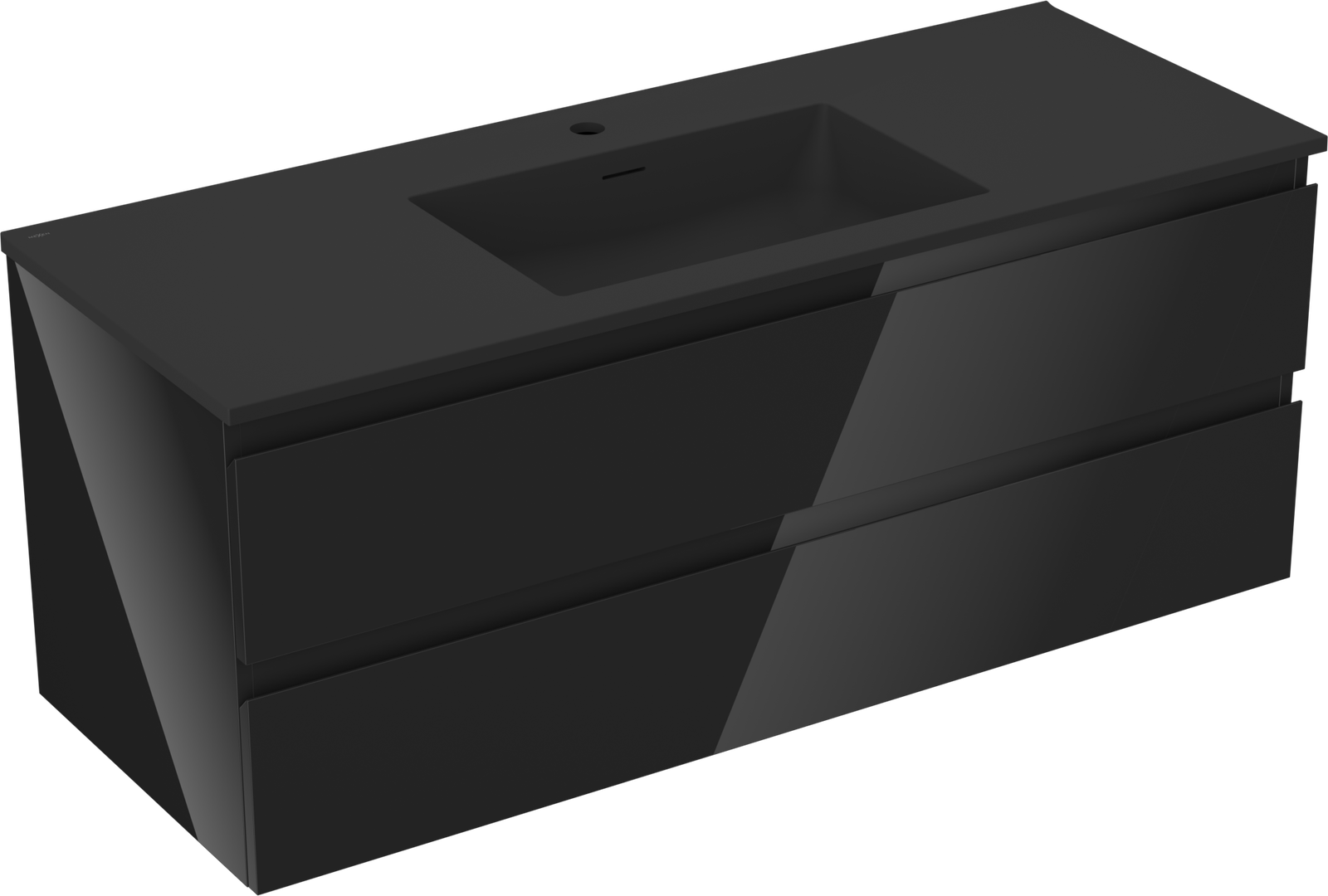 Mexen Orio 120 cm vannas istabas skapis ar izlietni Otis, 2 atvilktnes, melns spīdums/melns mats - 91A10-12047-2-BFF70-W18M71