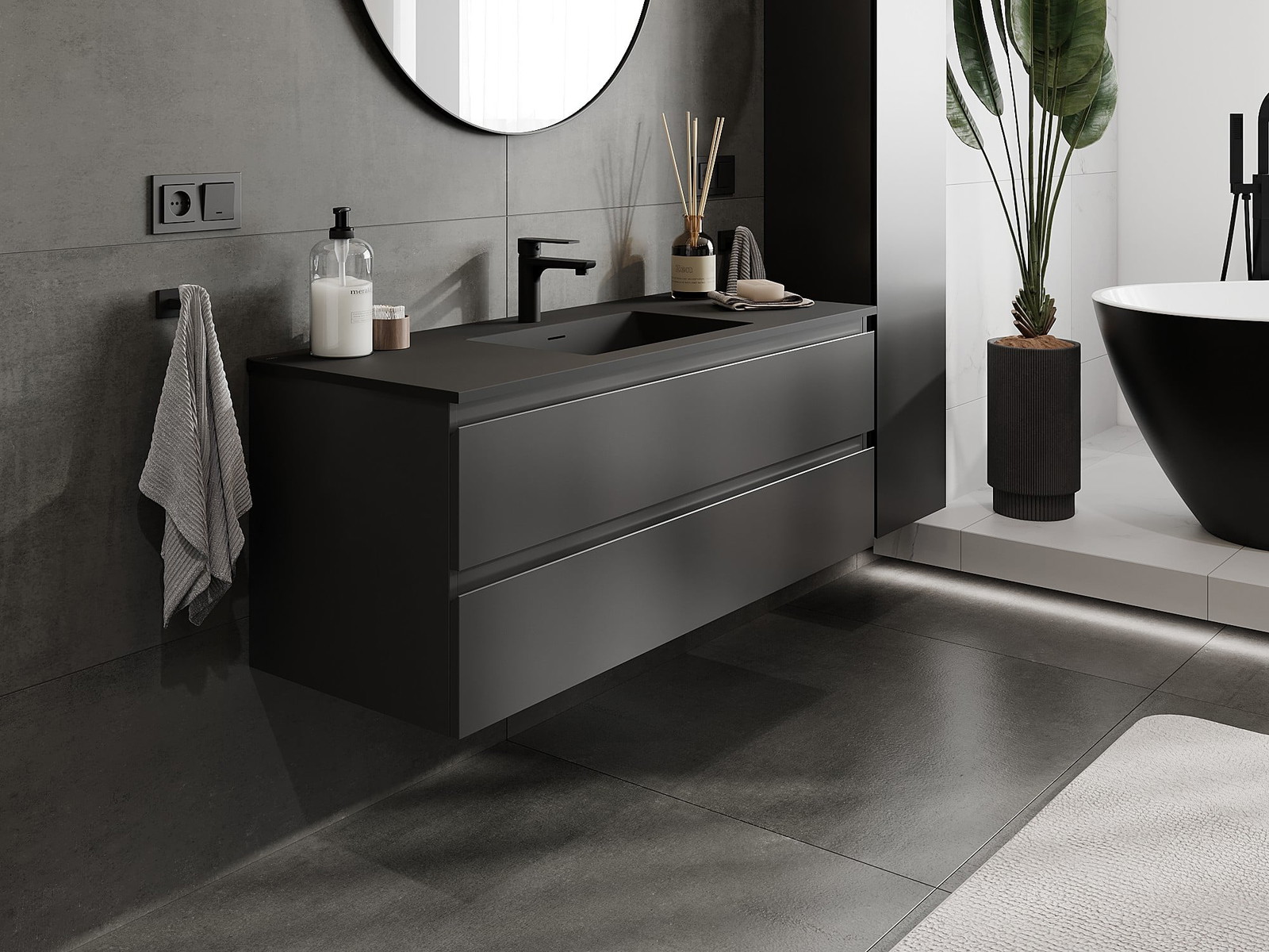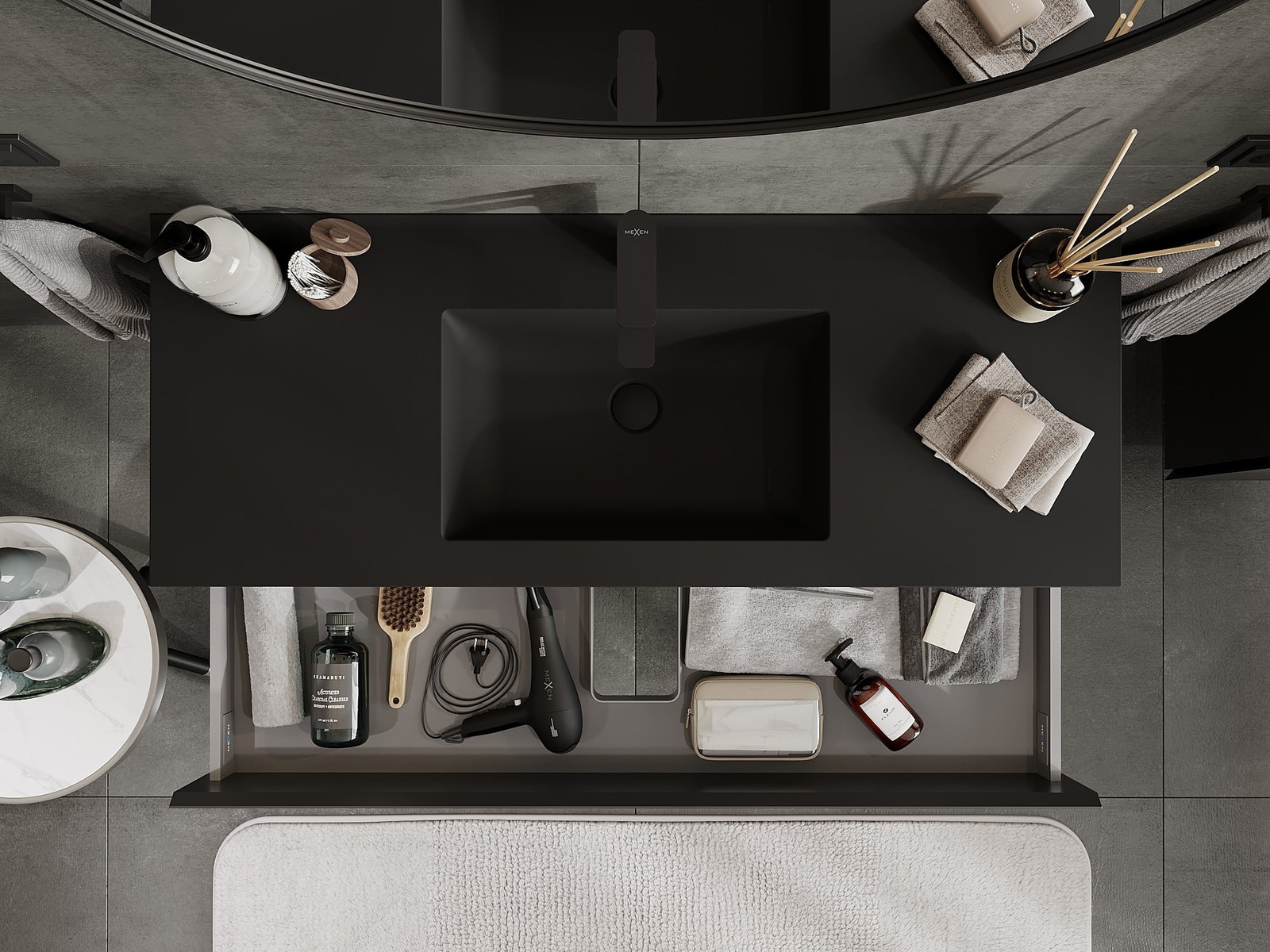 Mexen Orio vannas istabas skapītis 120 cm ar izlietni Otis, 2 atvilktnes, melns matēts - 91A10-12047-2-BFF71-W18M71