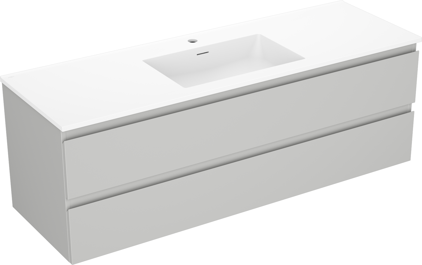 Mexen Orio vannas istabas skapītis 140 cm ar izlietni Otis, 2 atvilktnes, pelēks mats/balts mats - 91A10-14047-2-BFF62-W18M01
