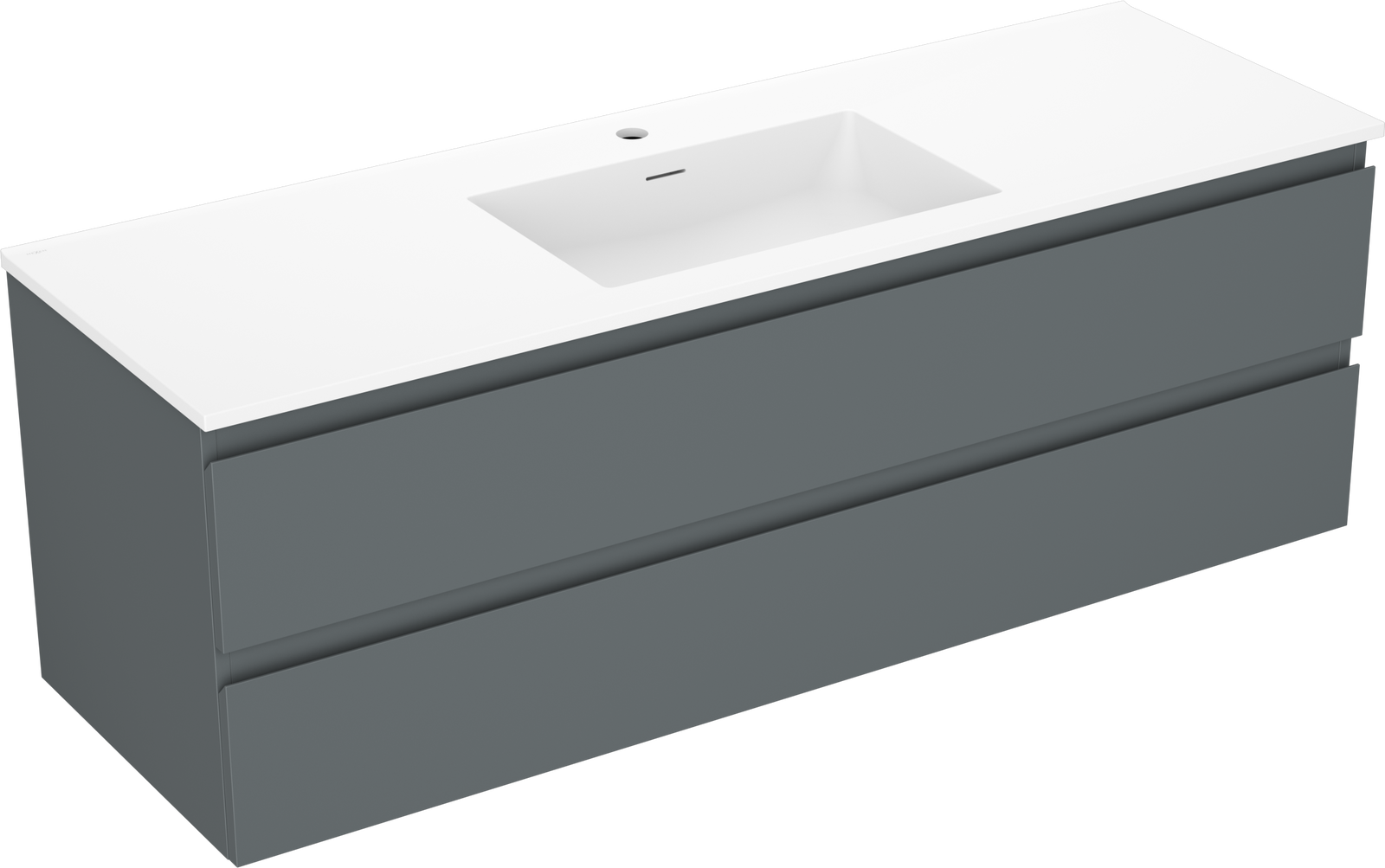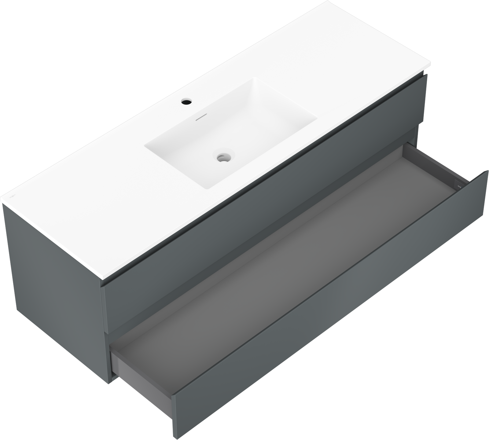 Mexen Orio vannas istabas skapītis 140 cm ar izlietni Otis, 2 atvilktnes, grafīta matēts/balta matēts