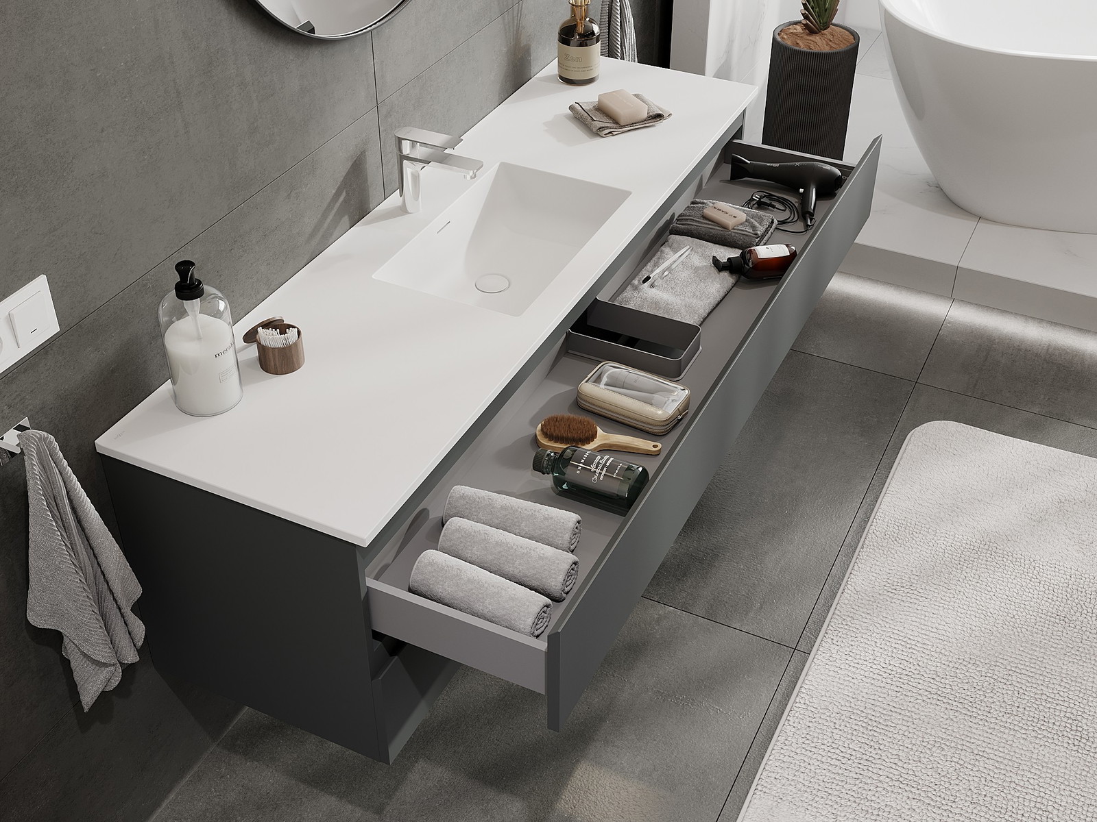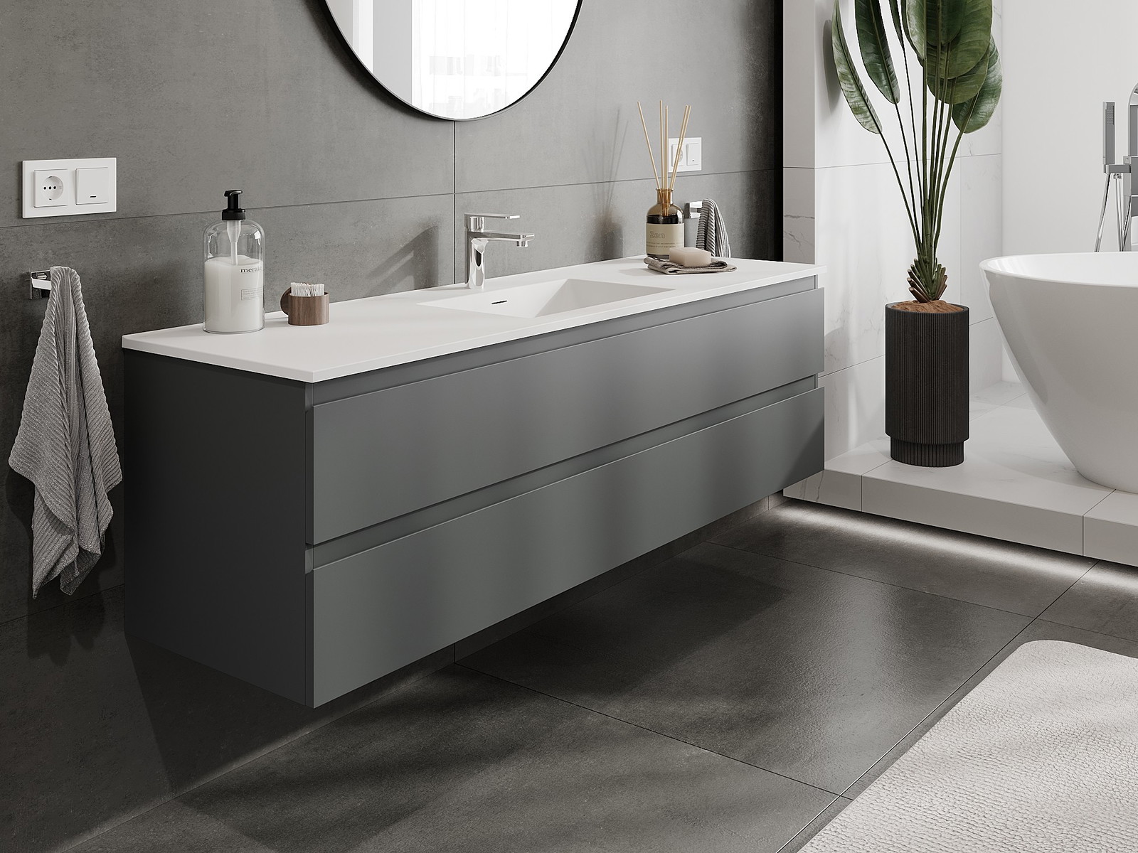 Mexen Orio vannas istabas skapis 160 cm ar izlietni Otis, 2 atvilktnes, grafīts matēts/balts matēts - 91A10-16047-2-BFF66-W18M01