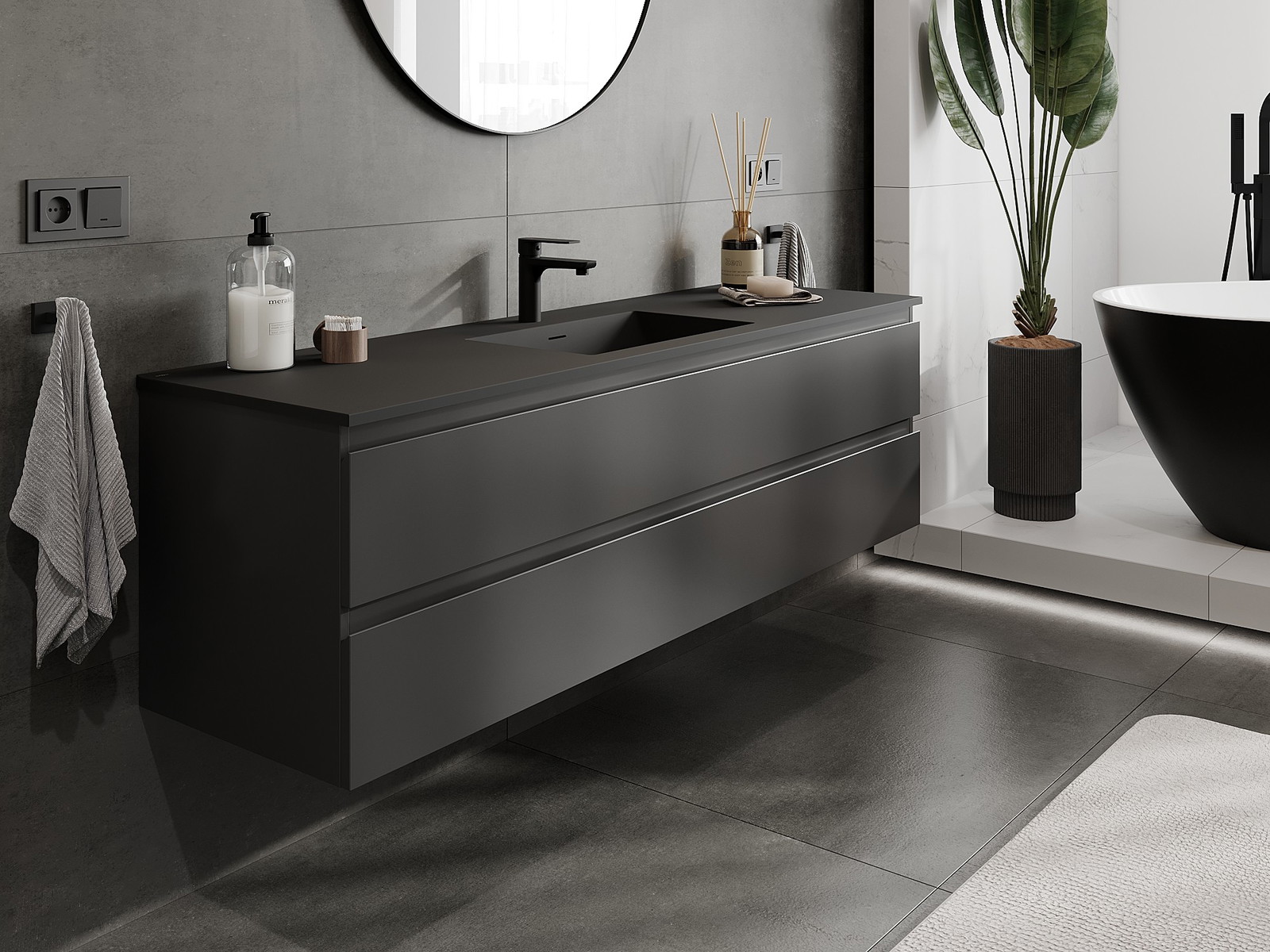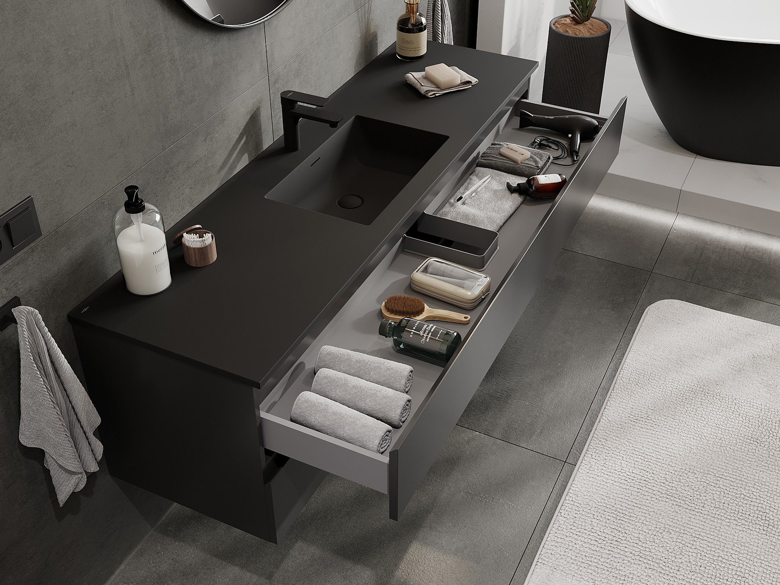 Mexen Orio 160 cm vannas istabas skapis ar izlietni Otis, 2 atvilktnes, melns mats - 91A10-16047-2-BFF71-W18M71