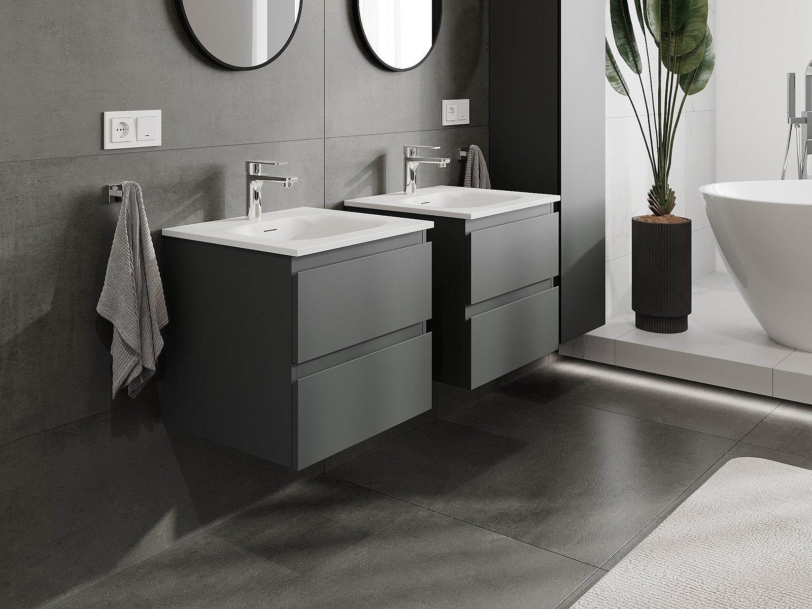 Mūsu modulārās vannas istabas mēbeles var savstarpēji kombinēt dažādās krāsu konfigurācijās, ļaujot pilnīgu personalizāciju. Var izvēlēties gan izskatu, gan atsevišķu elementu funkcijas, kas ļauj pielāgot mēbeles savām stilistiskajām un lietotāju vēlmēm.