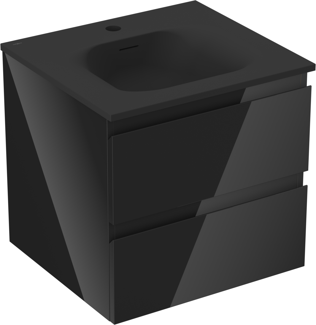 Mexen Orio 50 cm vannas istabas skapis ar Vela izlietni, 2 atvilktnes, melns spīdums/melns matēts - 91A10-05047-2-BFF70-W23M71