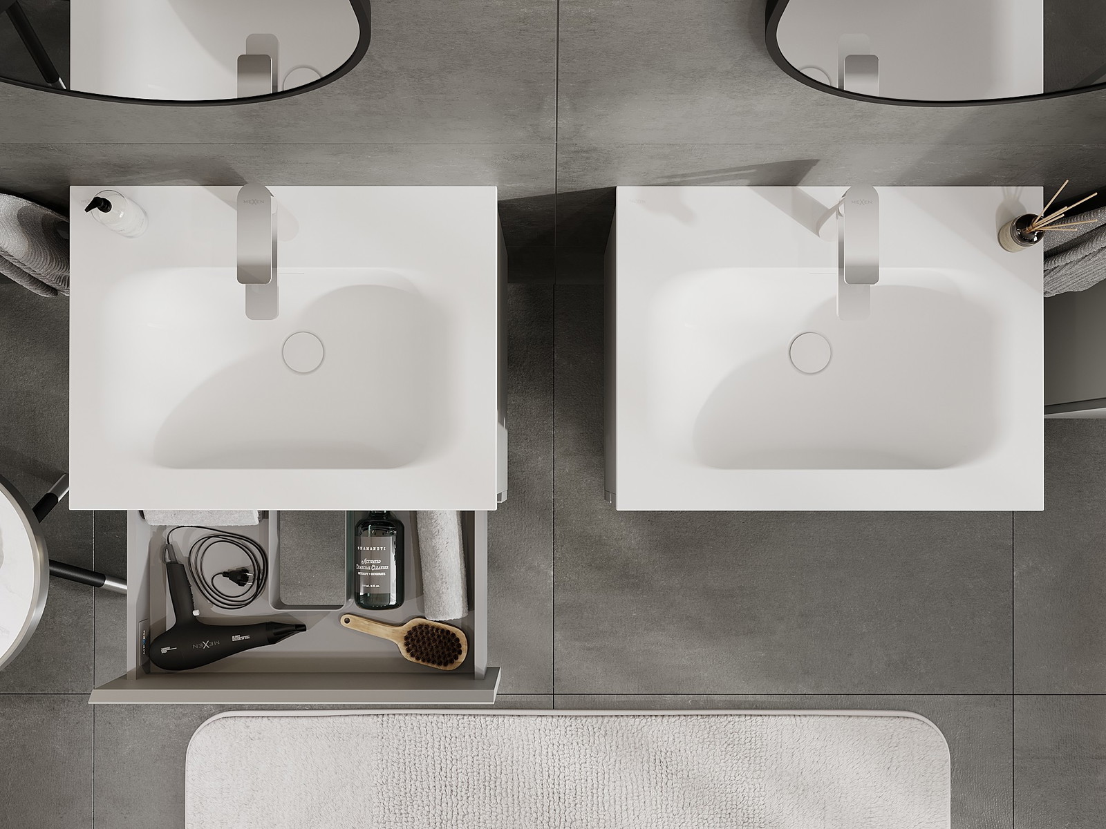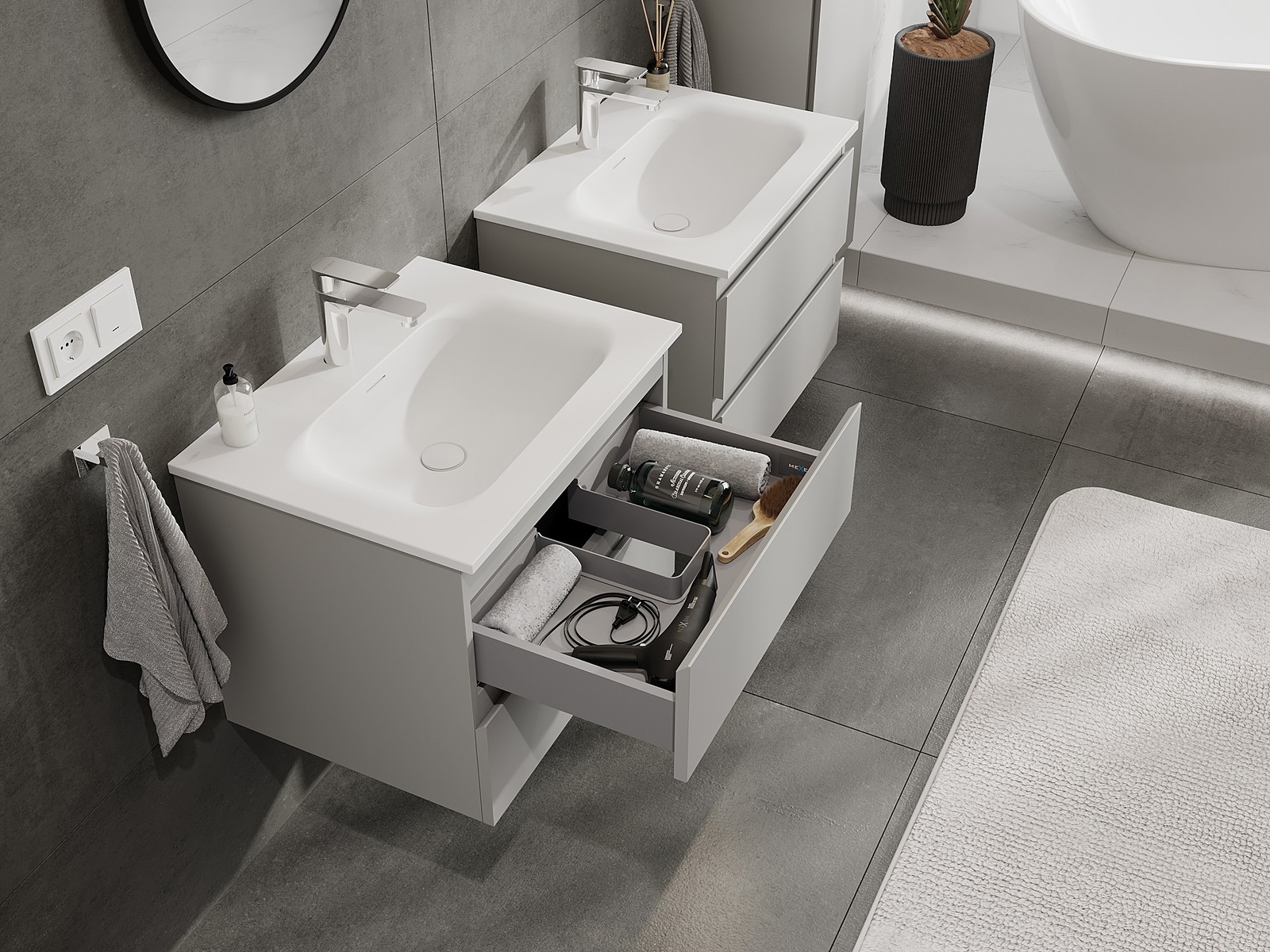 Mūsu modulārās vannas istabas mēbeles var savstarpēji kombinēt dažādās krāsu konfigurācijās, ļaujot pilnīgu personalizāciju. Var izvēlēties gan izskatu, gan atsevišķu elementu funkcijas, kas ļauj pielāgot mēbeles savām stilistiskajām un lietotāju vēlmēm.