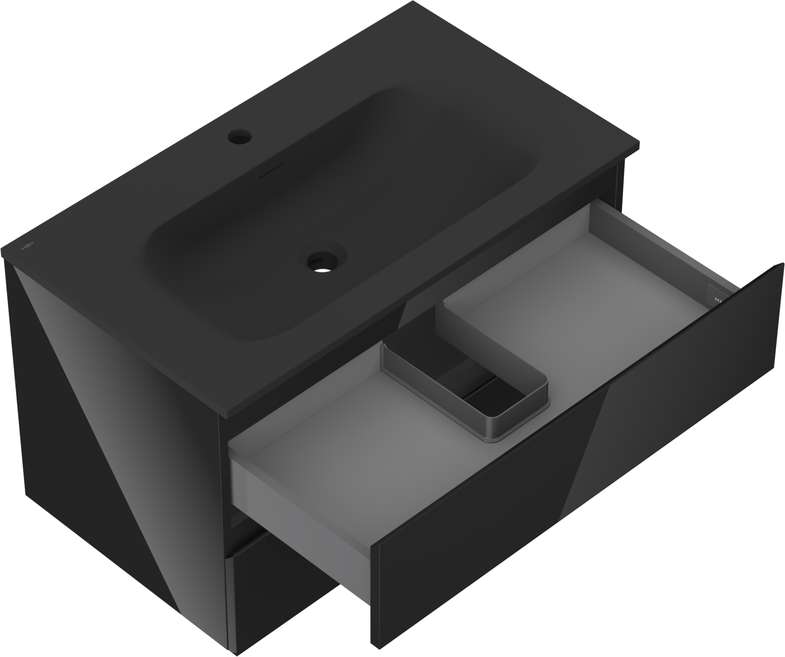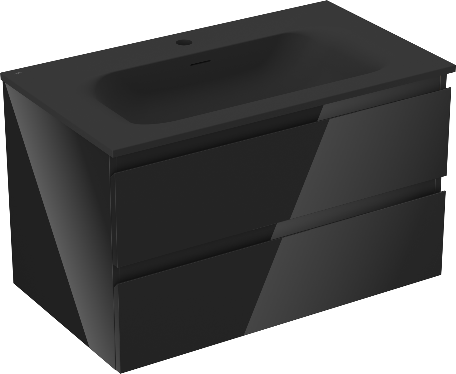 Mexen Orio 80 cm vannas istabas skapītis ar izlietni Vela, 2 atvilktnes, melns spīdīgs/melns matēts - 91A10-08047-2-BFF70-W23M71
