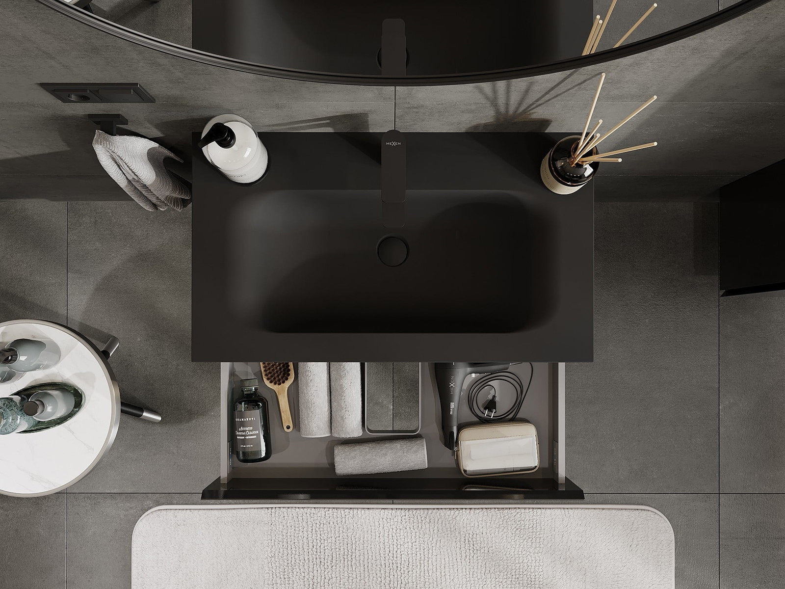 Skapja korpuss tiek piegādāts pilnībā samontēts, kas nozīmē maksimālu ērtību un laika ietaupījumu. Jums nav jātērē stundas mēbeļu salikšanai – pietiek to uzstādīt izvēlētajā vietā vannas istabā. Tas ir ideāls risinājums cilvēkiem, kuri novērtē ātru montāžu un tūlītēju efektu.
